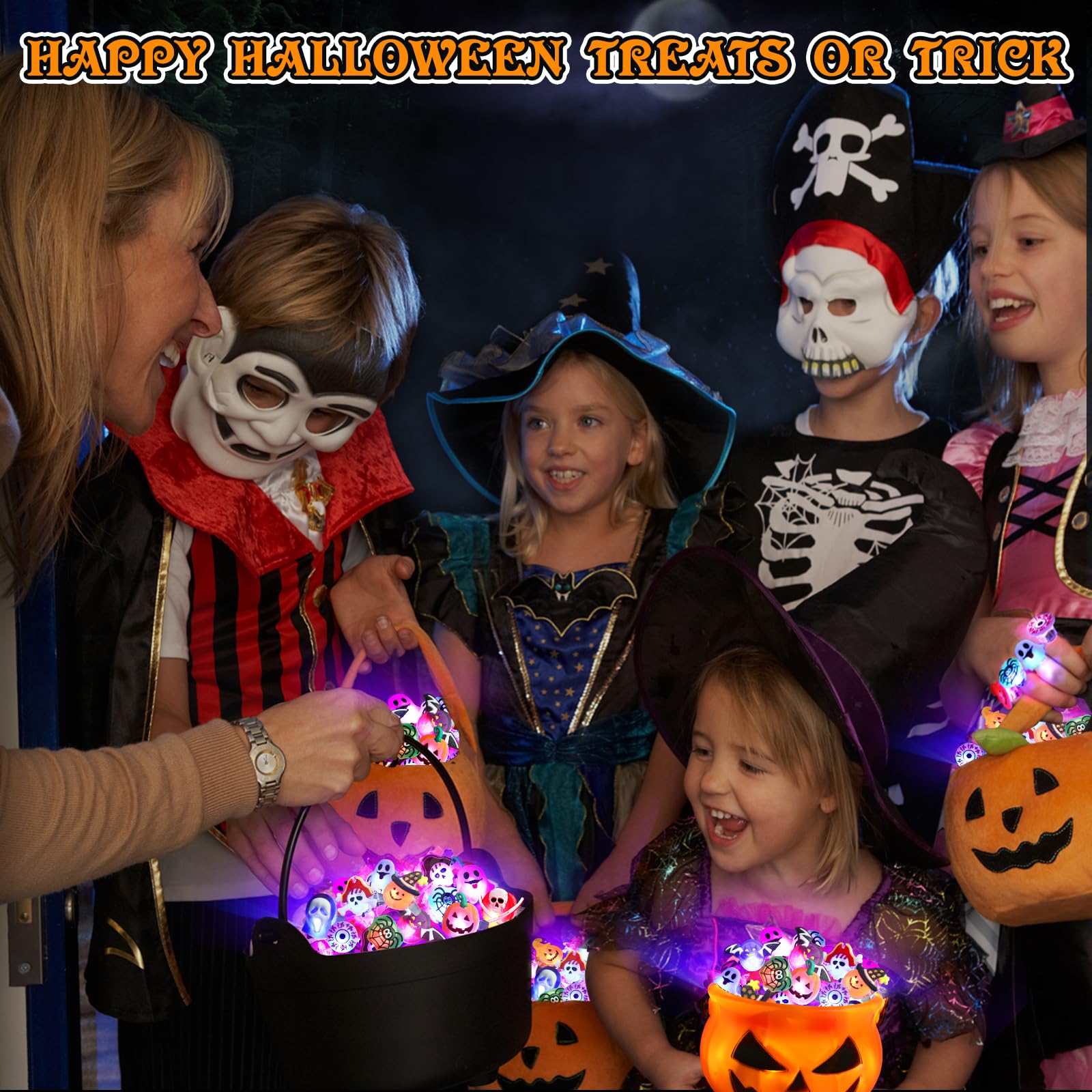- Diverse Selection of Patterns: With 50 unique light up rings included in each pack, you'll find a variety of Halloween-themed designs such as pumpkins, bats, spiders, and pirates. These rings are the perfect alternative to traditional candy, helping kids enjoy Halloween without the worry of toothaches.