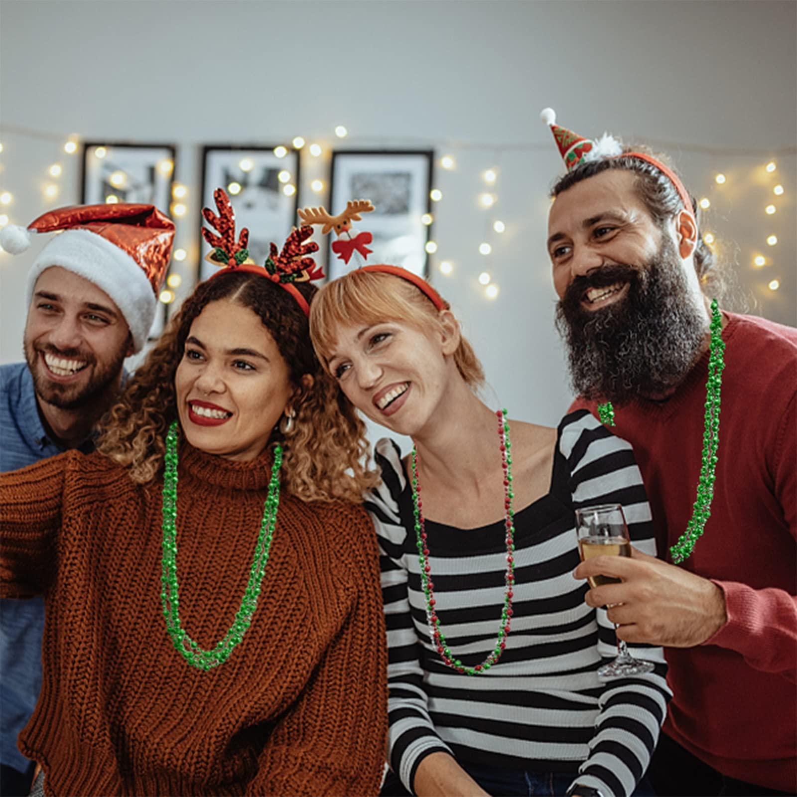 - Q: What colors are available for these beaded necklaces? A: These beaded necklaces come in three festive colors: red, silver, and green, making them perfect for Christmas and Mardi Gras celebrations.
