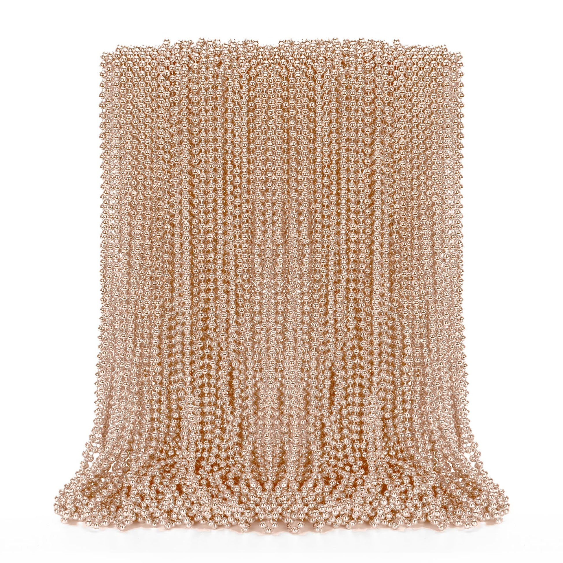 EOBOH 72PCS Mardi Gras Beads, Metallic Rose Gold Christm Bead Necklace Party Favors, 33 Mardi Gras Necklace Stuff, Festival Para