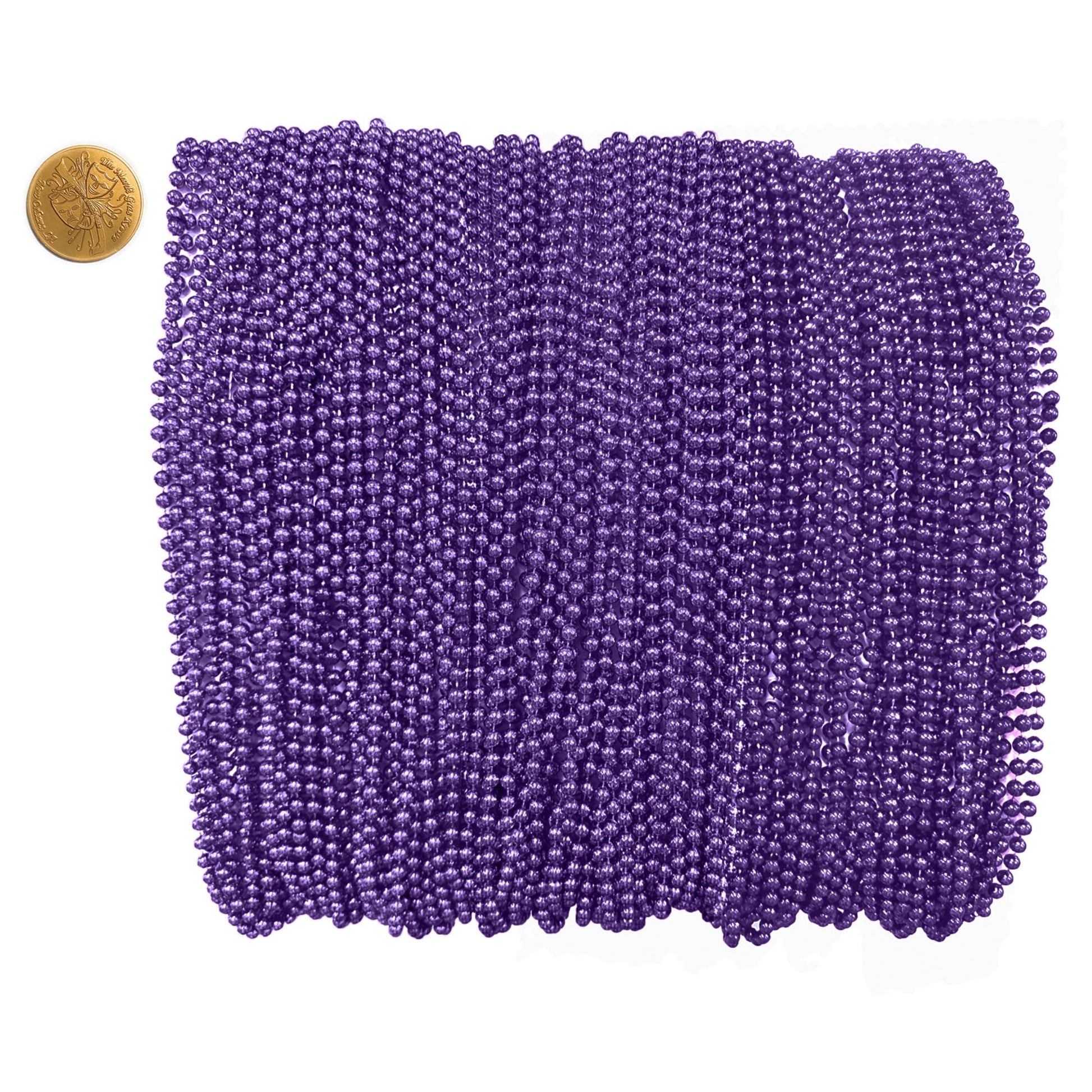 Mardi Gras Beads 33 inch 7mm, 12 Dozen, 144 Pieces, Purple Necklaces with Doubloon