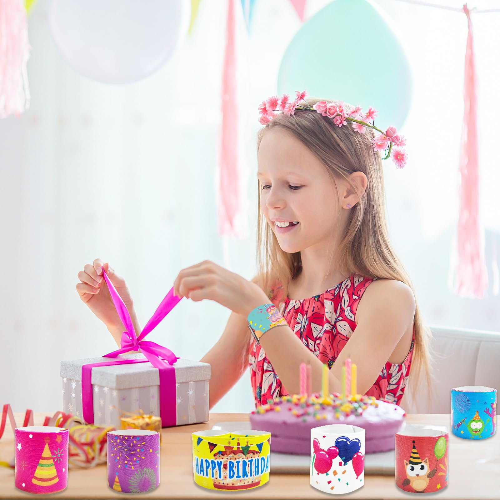 Viicoor Birthday 48PCS Slap Bracelets Snap Bracelet Wrisrtband for Party Favors Basket Bag Filler School Prizes Exchanging Gifts