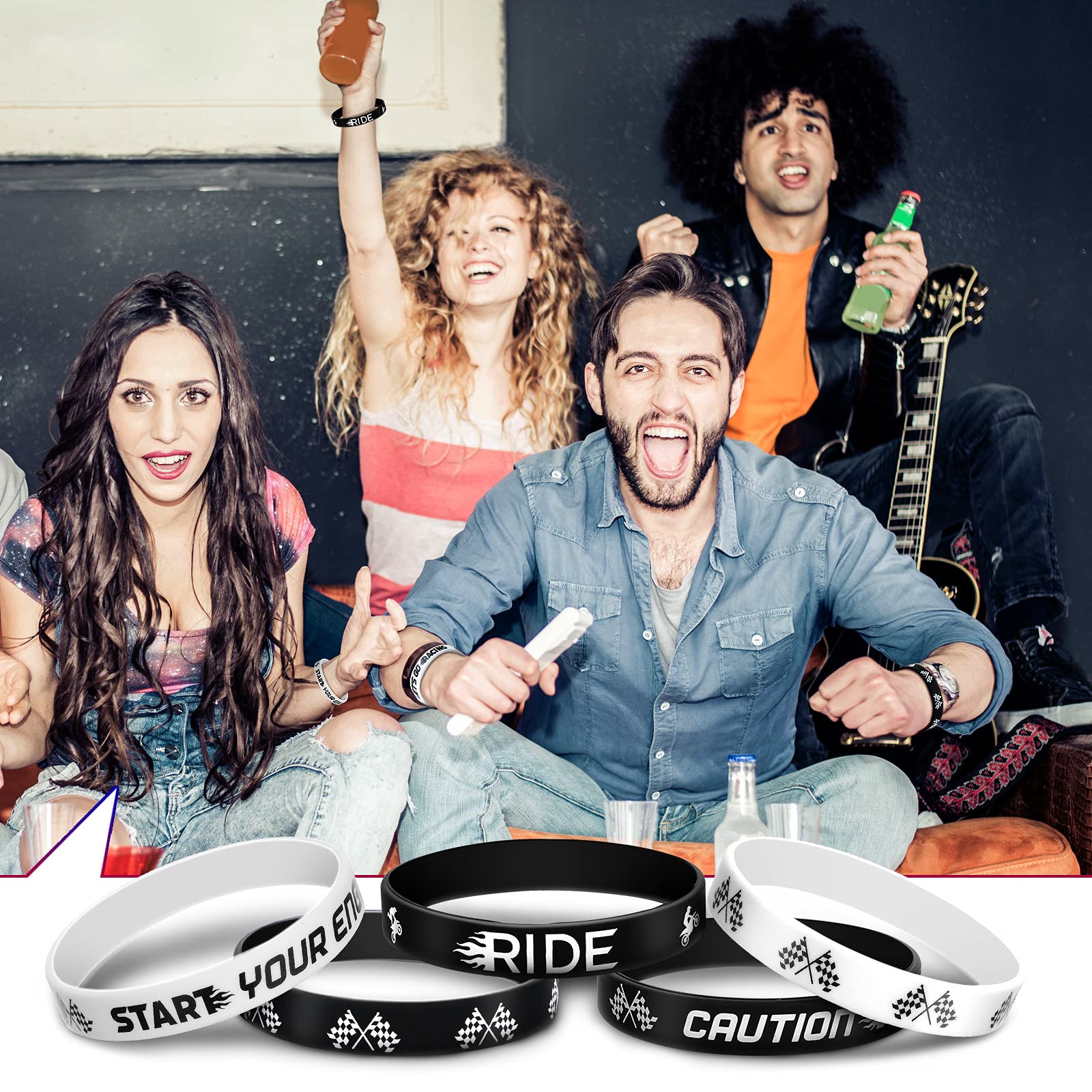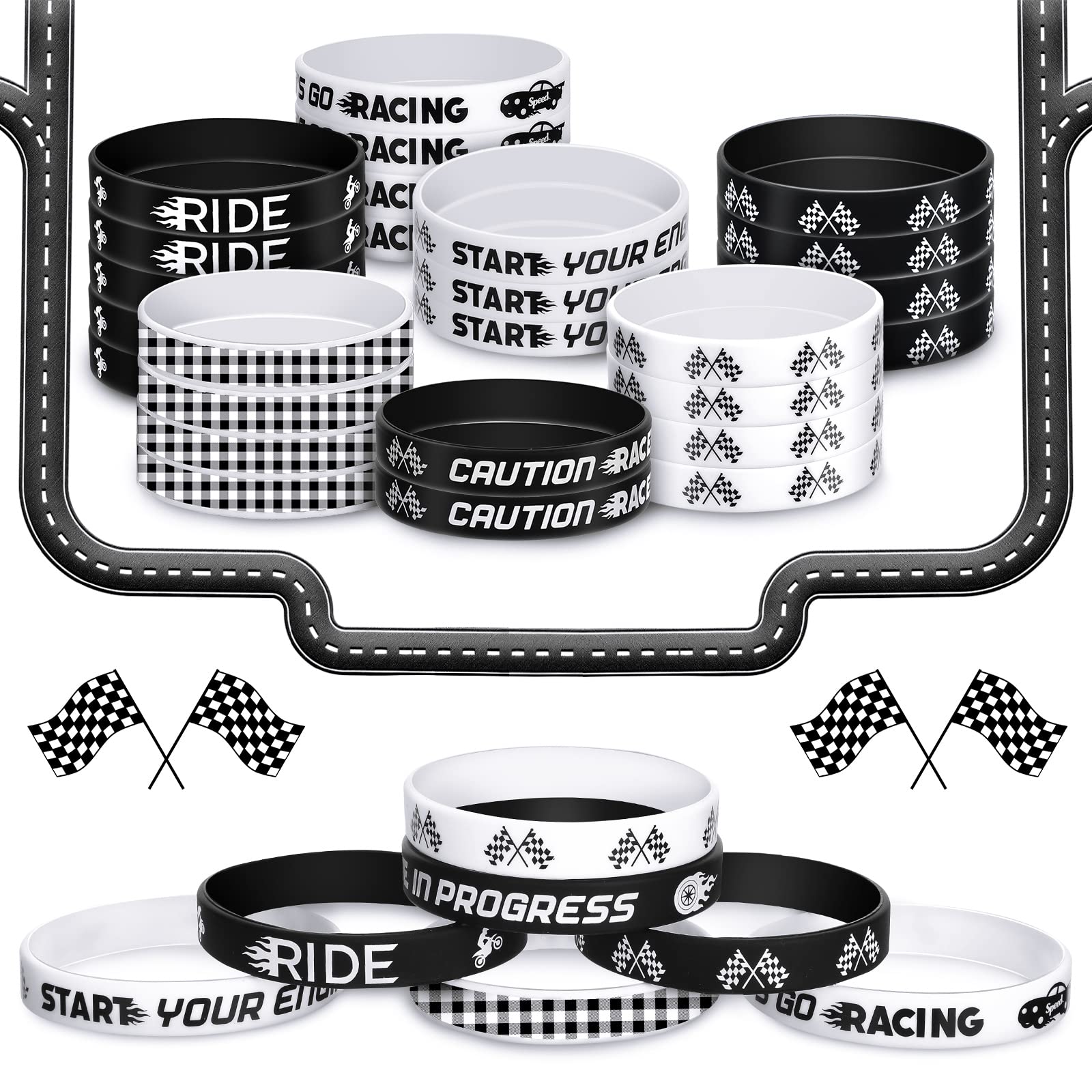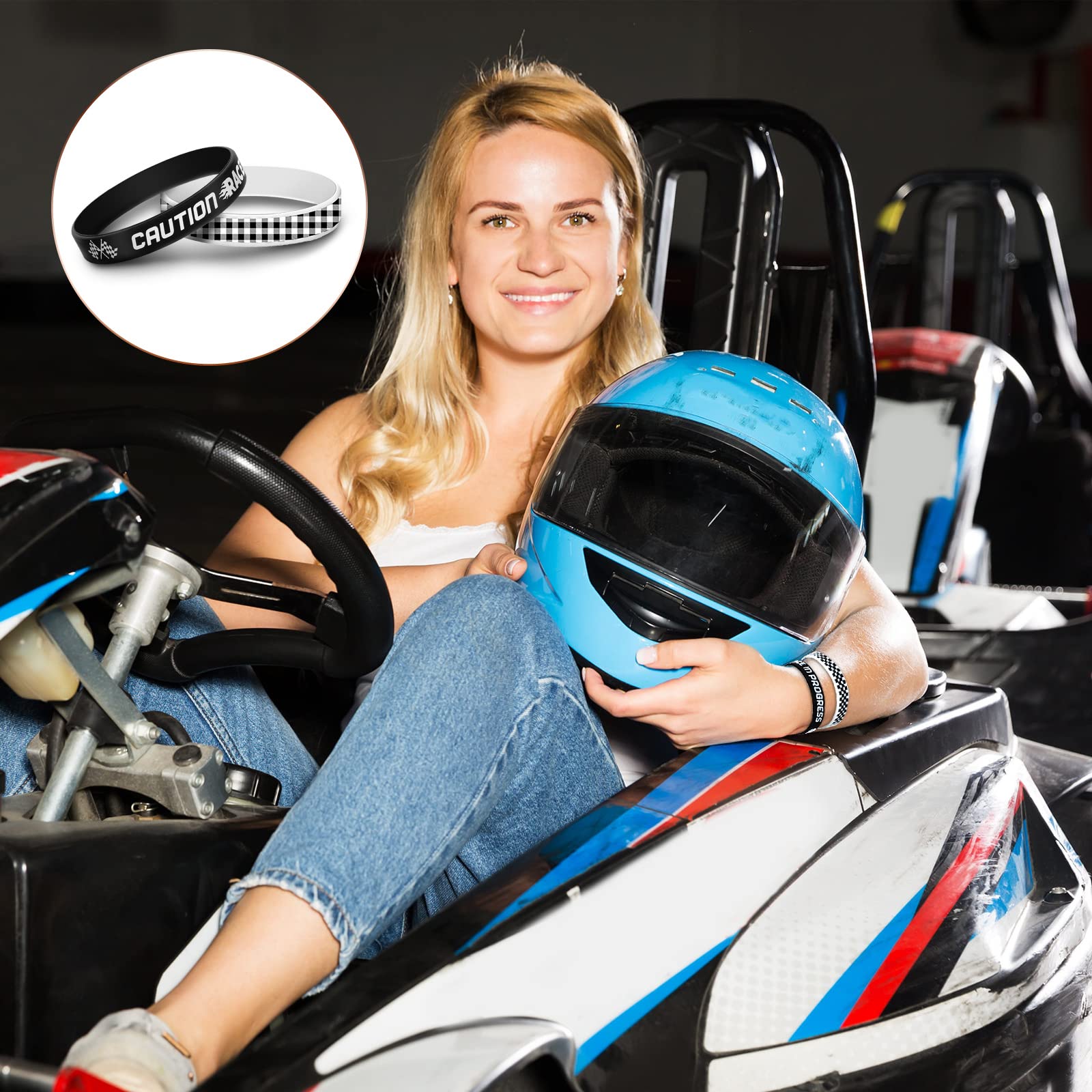 Zhanmai 50 Pcs Racing Flag Rubber Bracelets for Race Car 2.56 Inch Checkered Flag Wristbands Race Car Party Favors for Adults Sp