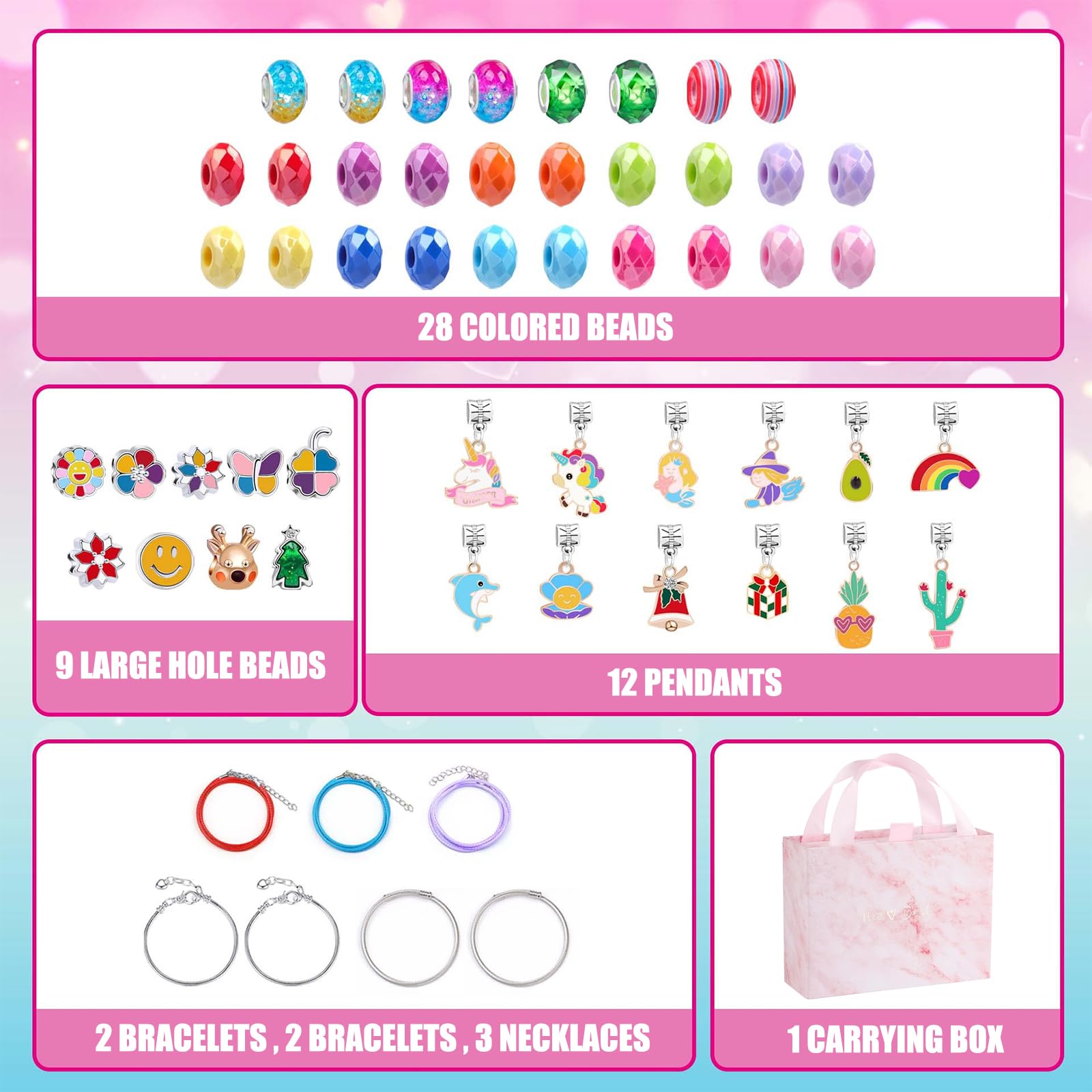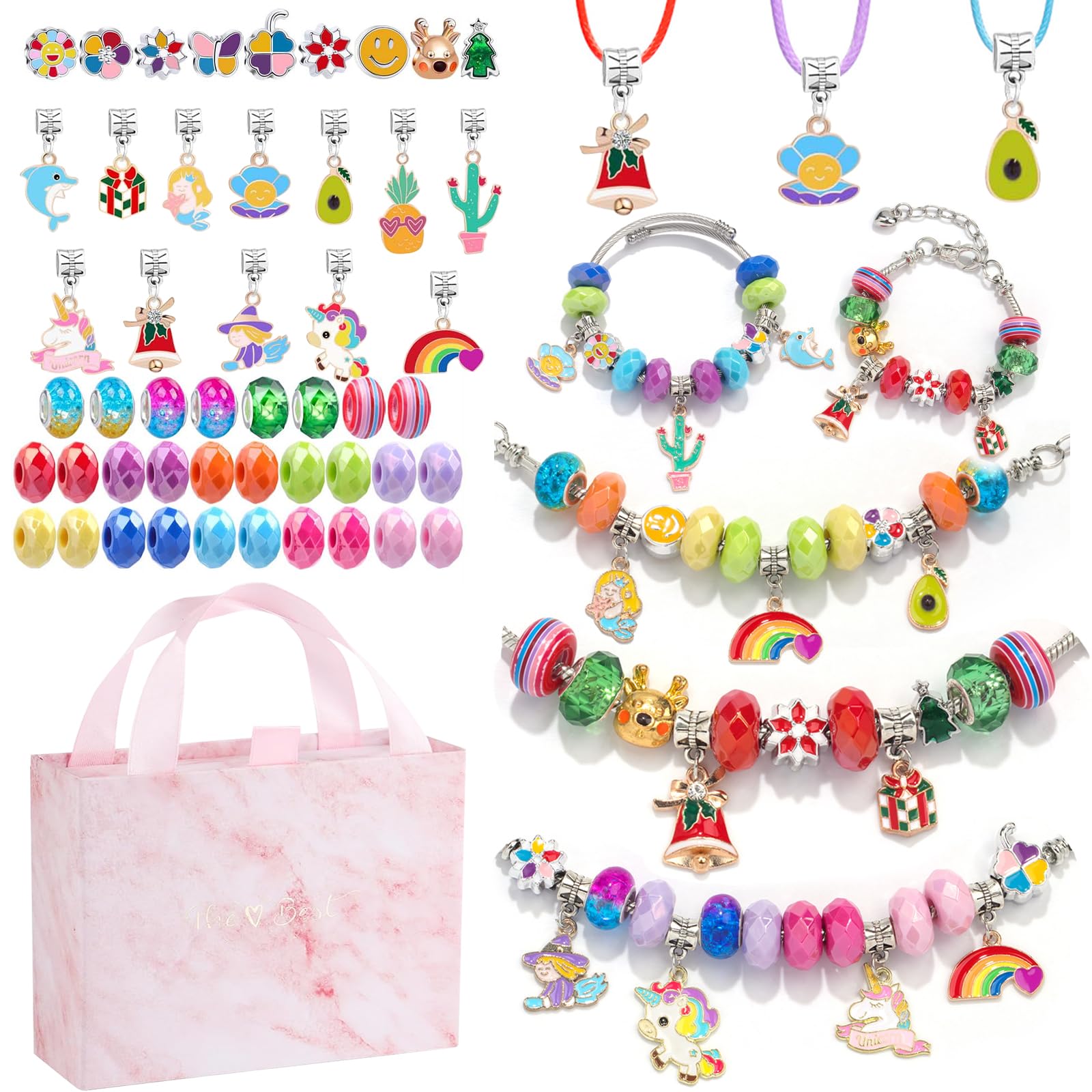 Happytime Charm Bracelet Making Kit For Girls Jewelry Making Supplies Beads Unicorn Mermaid Arts And Crafts Girls Toys Age 6-8