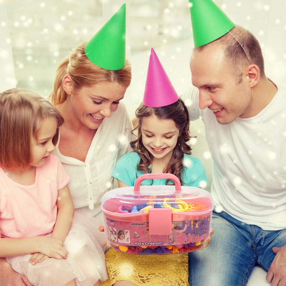 With so many distractions in their lives, we feel like kids are starting to forget about the beauty of crafting and how wonderful it can be to spend time building something from scratch. That is why we have designed the amazing pop beads jewelry kit, a nice crafting box that allows your daughter to create anything she wants in a world where imagination has no limits. Create as many combinations as you desire.This kit is perfect for a play date, rainy day or party fun.MORWANT beads snap together quickly, securely, and easily. Wonderful toys for 4,5,6,7 year old and up girls.