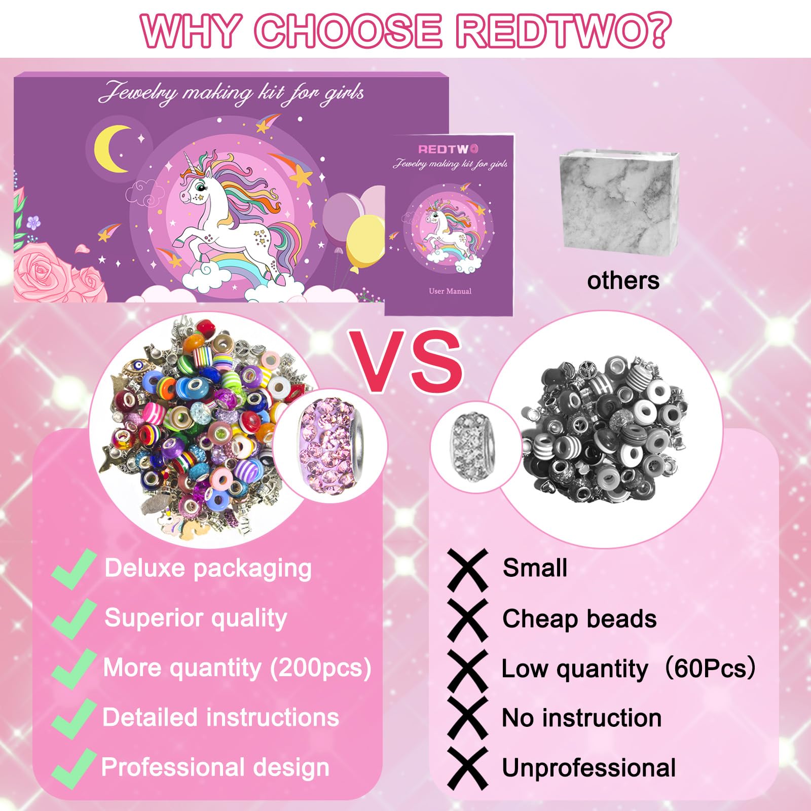 View compareRedtwo 200 Pcs Charm Bracelet Making Kit, Friendship Jewelry Making Supplies Unicorn/Mermaid/Birthday Gifts Toys For Teen Girls