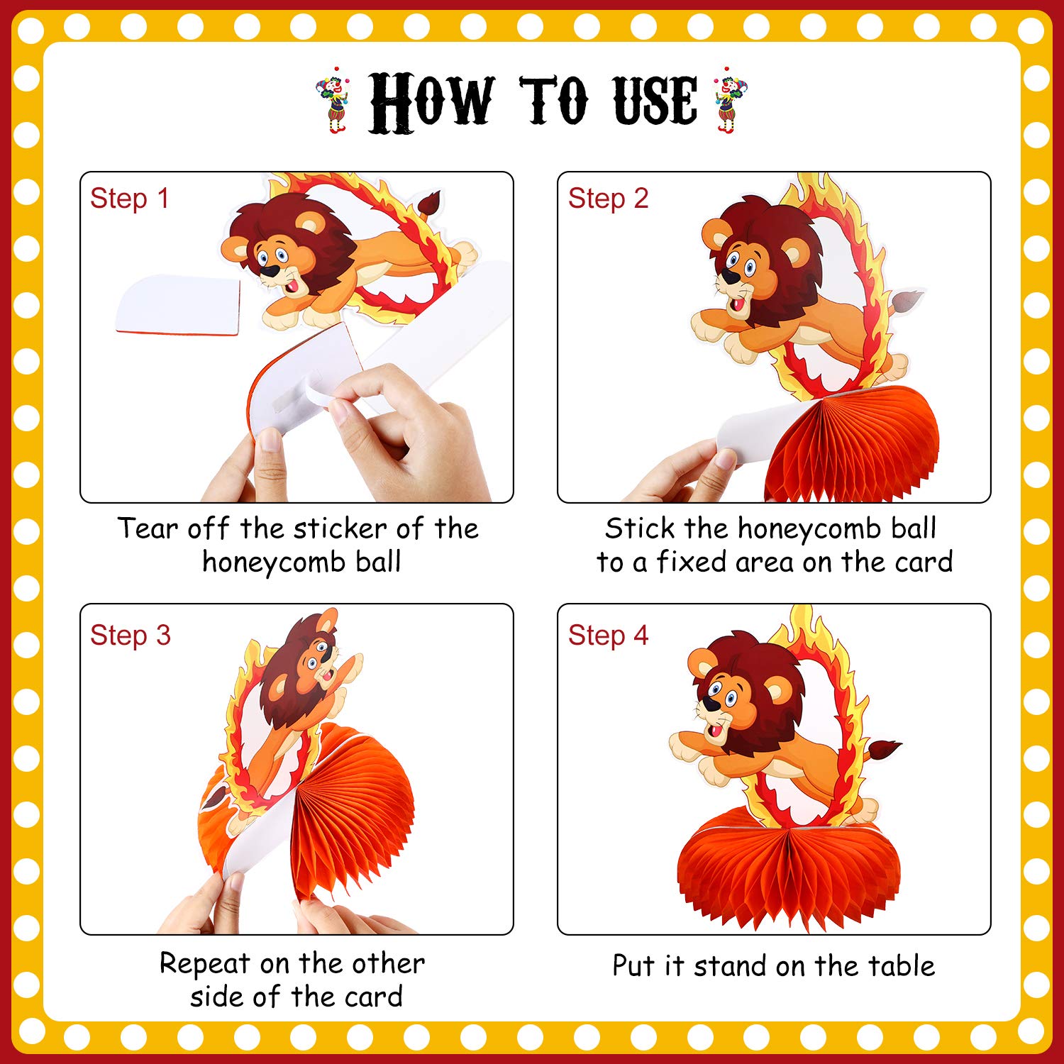 10 Pieces circus carnival animals honeycomb centerpieces carnival party table topper circus carnival party favors for birthday baby shower circus theme party decorations DIY cute and chic table decorations: These honeycombs attached with double-sided adhesive, easy and convenient for you to combined with circus animals decorations together, just a few seconds needed, time saving and energy saving, can be a wonderful decorations for various parties, or applied as photo props, table decorations, and more. Reliable for long time to use: Made of thick cards and paper honeycomb, circus carnival centerpieces can be folded after use, allowing for multiple times of usages. Wide rang of use: Circus carnival animals honeycomb centerpieces are designed with colorful and adorable patterns, ideal for birthday party, baby shower table decoration, party photo props, celebration decorations. Specifications: Material: thick cards, paper Patterns: as shown in the figures Size: within 9 x 8 inches Packing includes: 10 x Circus carnival animals honeycomb centerpieces