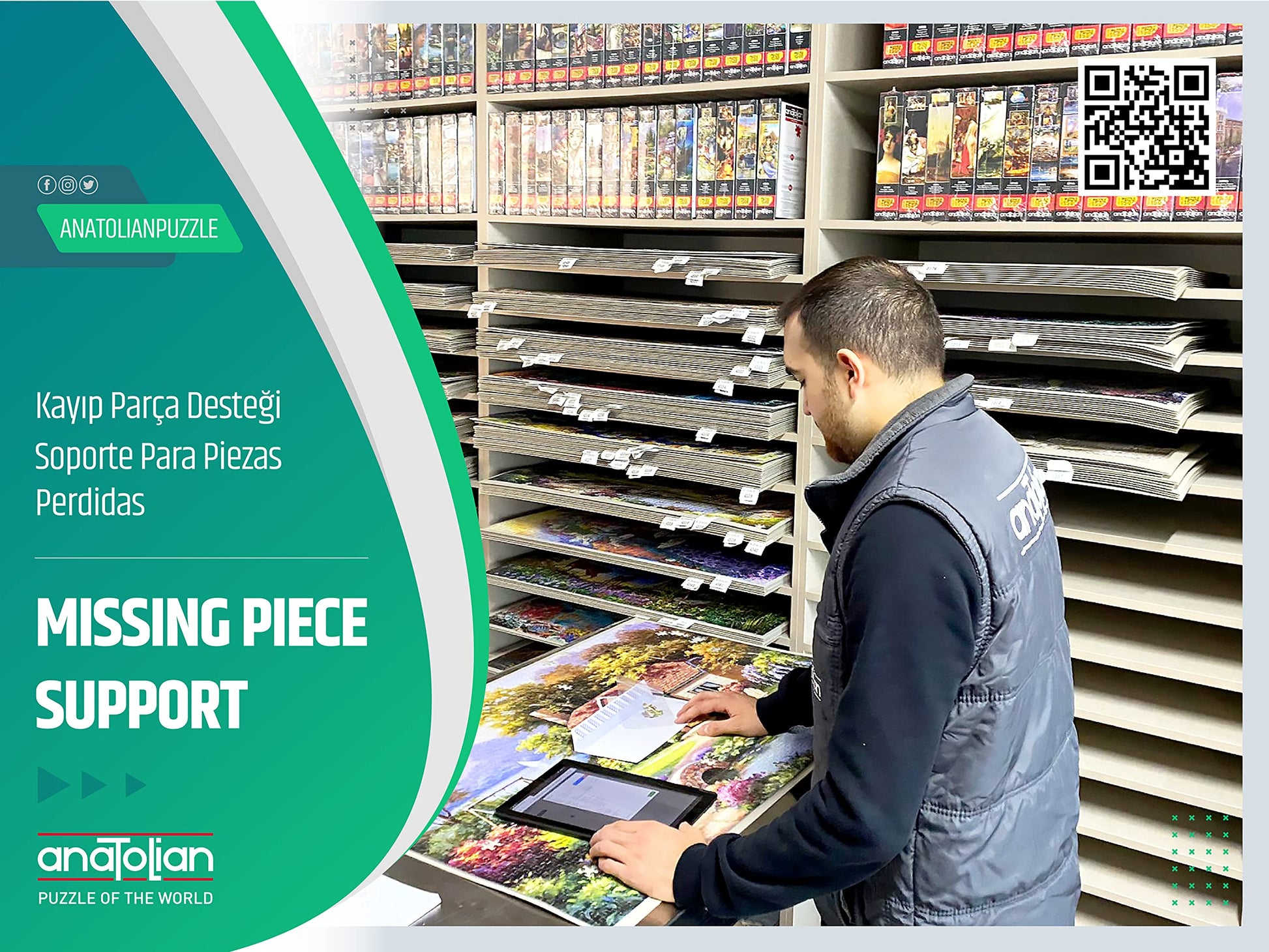 - Q: Does the puzzle come with a support for missing pieces? A: Yes, Anatolian offers Missing Piece Support, which is free and valid worldwide for all their jigsaw puzzles.