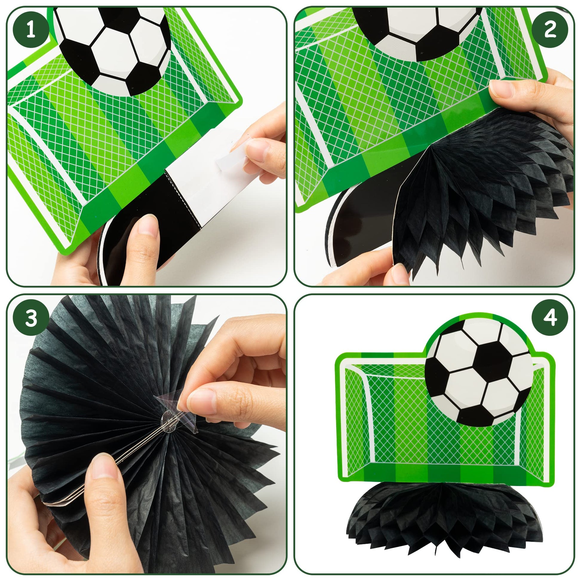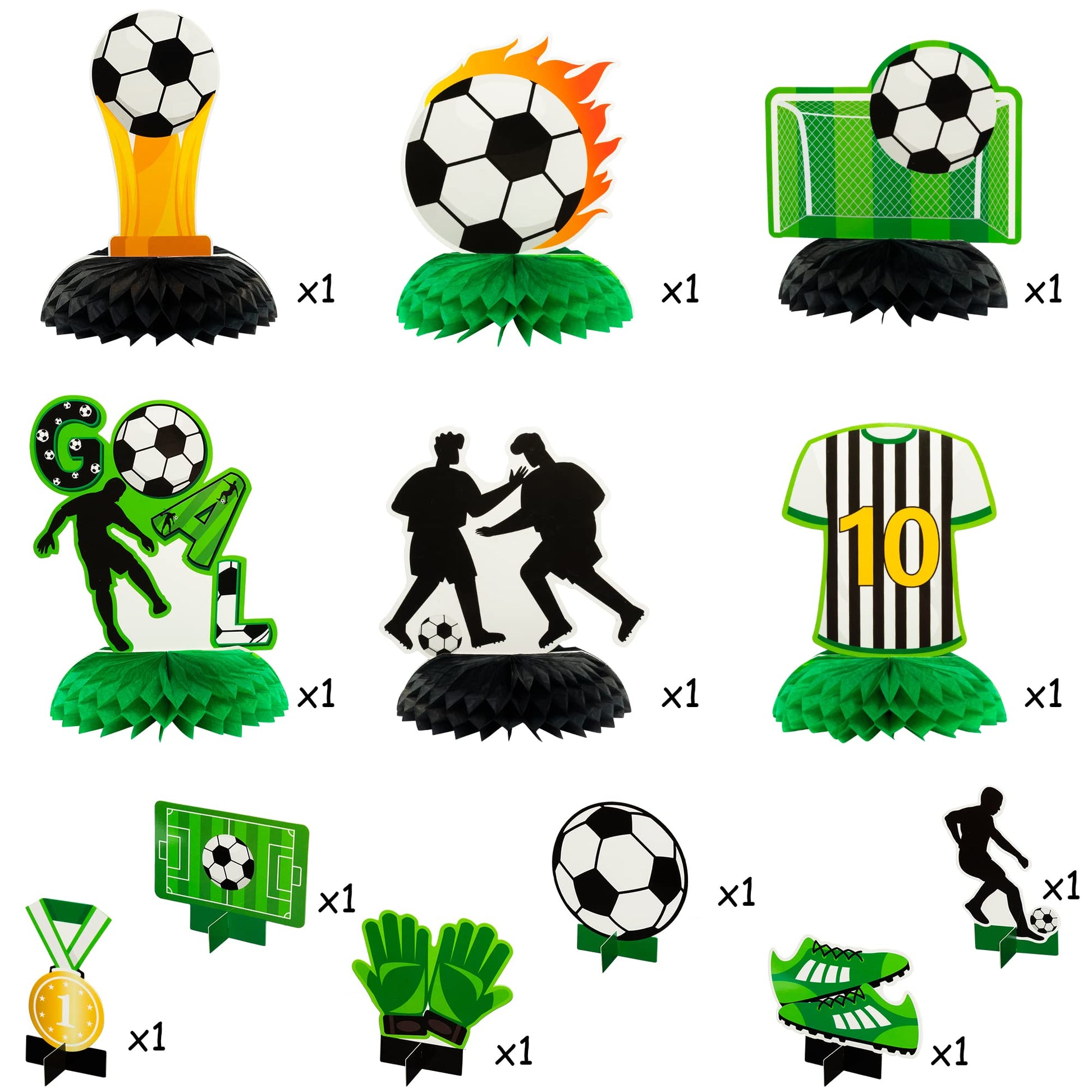 12Pcs Soccer Ball Birthday Honeycomb Centerpiece Package Including: Soccer honeycomb*6 soccer centerpiece*6 Glue*1 Anti-bending base card*1 Warm Tips If you have any questions or concerns about this purchase, please feel free to contact us. We promise to solve the problem as soon as possible.