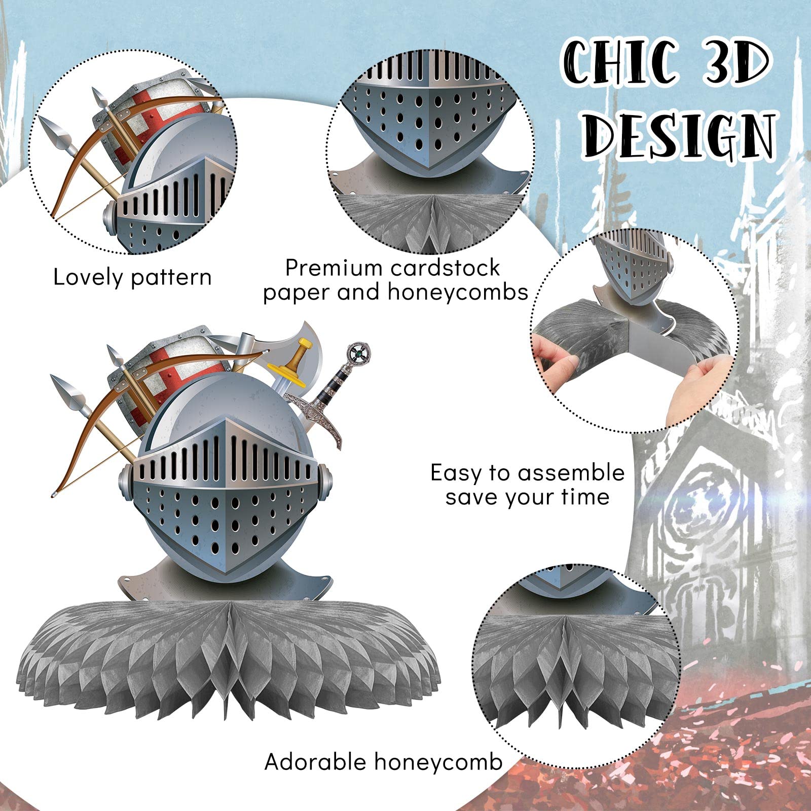 Gersoniel 10 Pcs Medieval Knight Birthday Party Decorations Castle Honeycomb Centerpiece Knight Action Figures Table Topper for