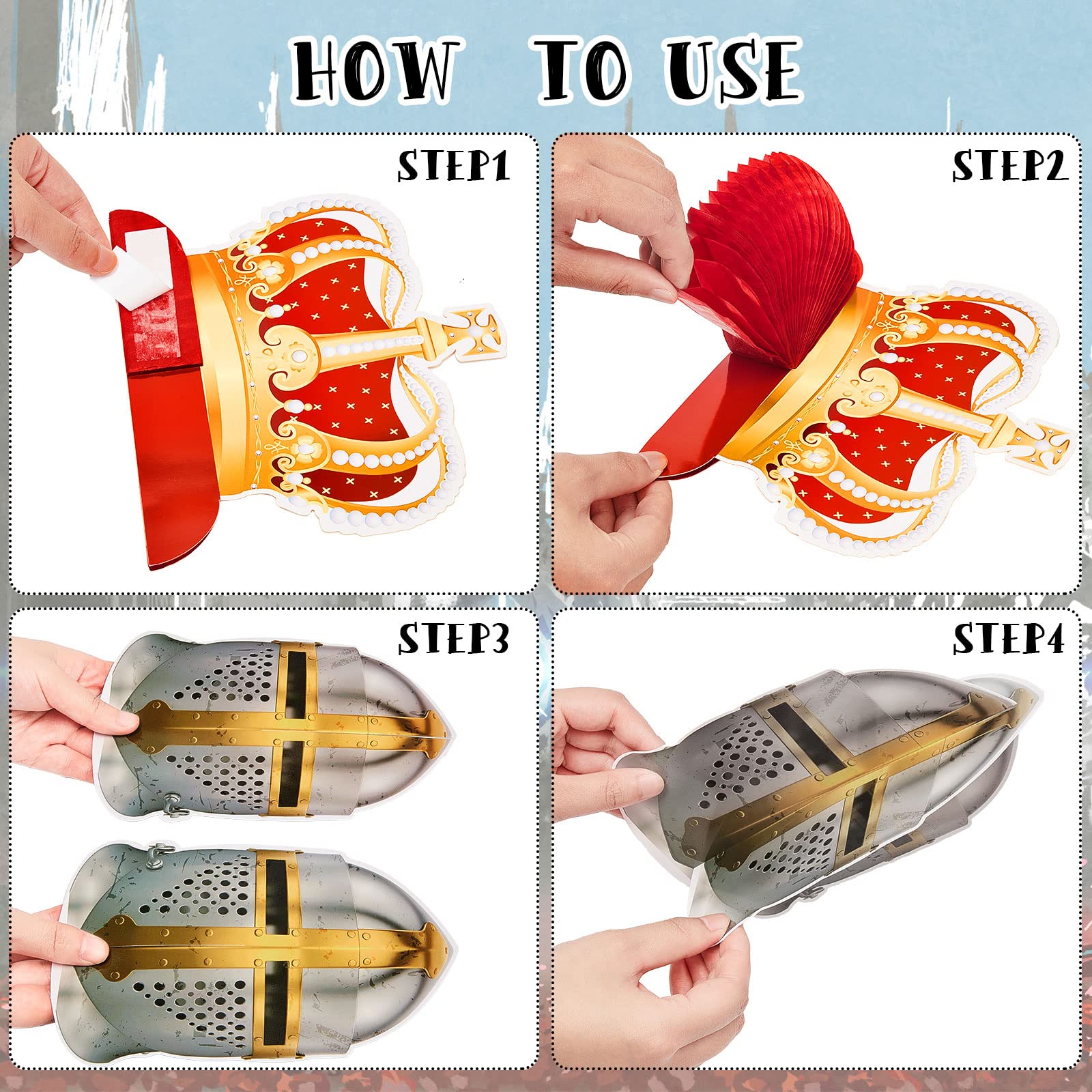 Features: Thoughtful gifts: You can give these knight home decors to your family or friends who like medieval elements and let them decorate their rooms with these knight honeycomb table centerpiece. Meaningful souvenirs: You can decorate your party with these knights party decorations. After the party, you can give them to the people who come to the party as a meaningful souvenir. Specifications: Main material: paper Color: as shown in the pictures Size: as shown in the pictures Age: above 14 years old Package includes: 10 x Medieval knight table centerpieces Notes: Manual measurement, please allow slight errors on size. The color may exist a slight difference due to different screen displays. Keep away from fire.