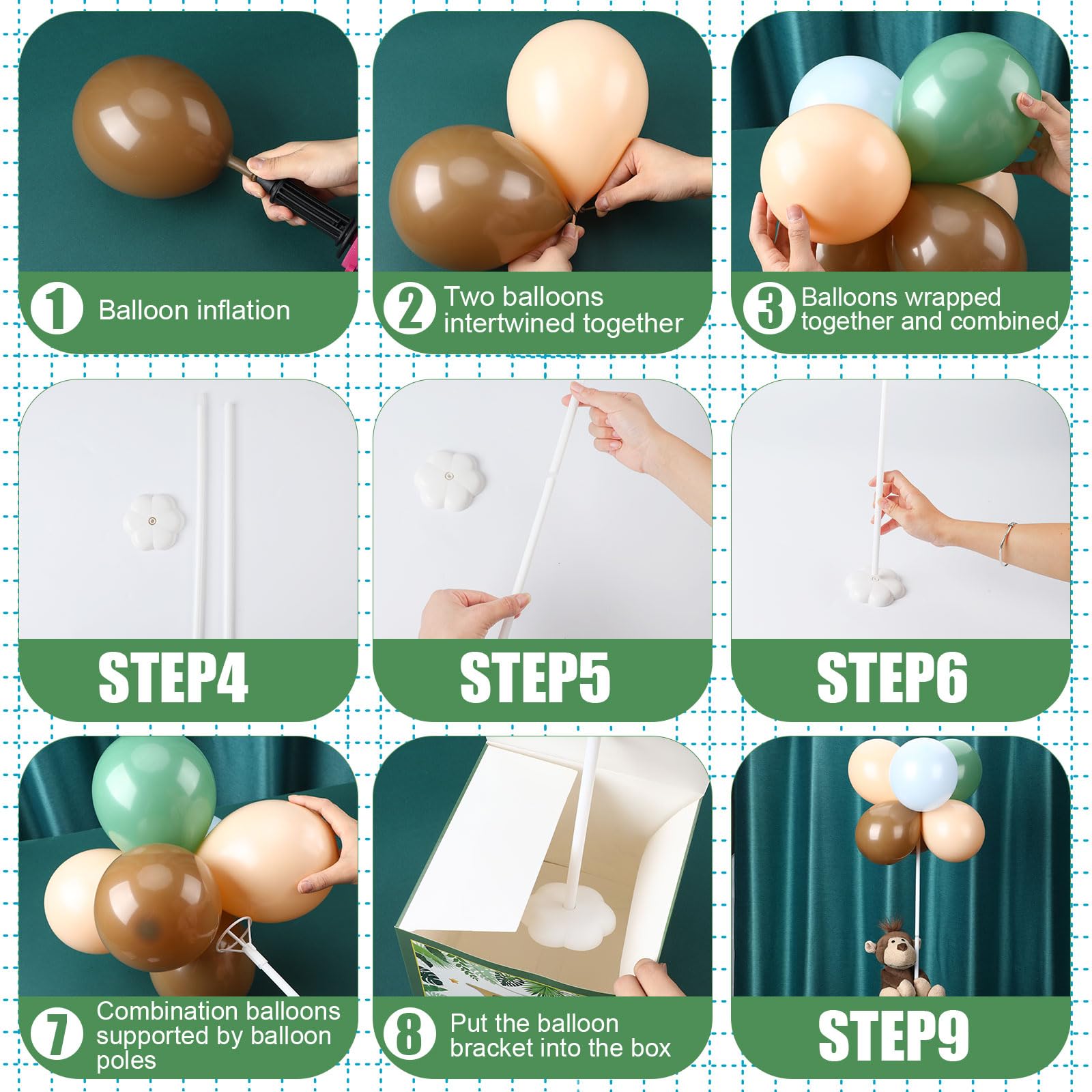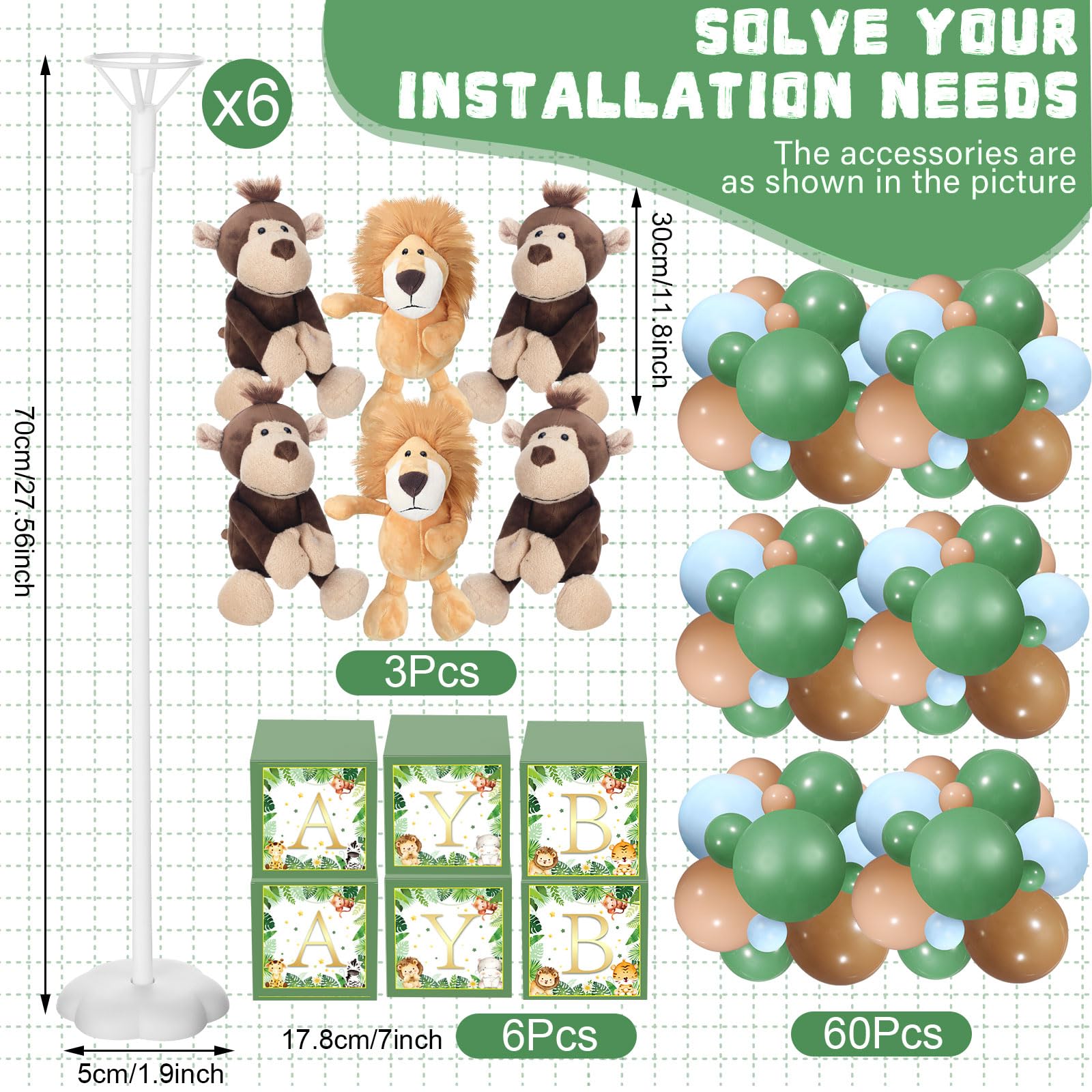 Features: You can assemble the birthday balloon decoration set according to your preference, and can match with other shaped and colorful balloons to make the whole jungle animals themed decorations more delicate and eye catching. Our jungle animals centerpiece baby shower, stuffed monkeys and lions and others can be sent to your mates, family members, neighbors and other people who have a baby shower party, which can help them decorate the party scenes easily. Specifications: Color: brown, skin color, blue, green Size: Stuffed monkey: 7.87 inches/ 20 cm in height Stuffed lion: 9.84 inches/ 25 cm Balloon stand: 16.54 x 1.97 inches/ 42 x 5 cm Balloon: 5 inches Boxes: about 7 x 7 x 7 inches/ 17.8 x 17.8 x 17.8 cm Package includes: 3 x Stuffed monkeys 3 x Stuffed lions 6 x Baby themed boxes 6 x Balloon stand 60 x Baby shower balloons Notes: Manual measurement, please allow slight errors on size. The color may exist a slight difference due to different screen displays. Please keep the balloon away from pointed objects, heat or fire resources. And do not over inflate the balloon to avoid bursting.
