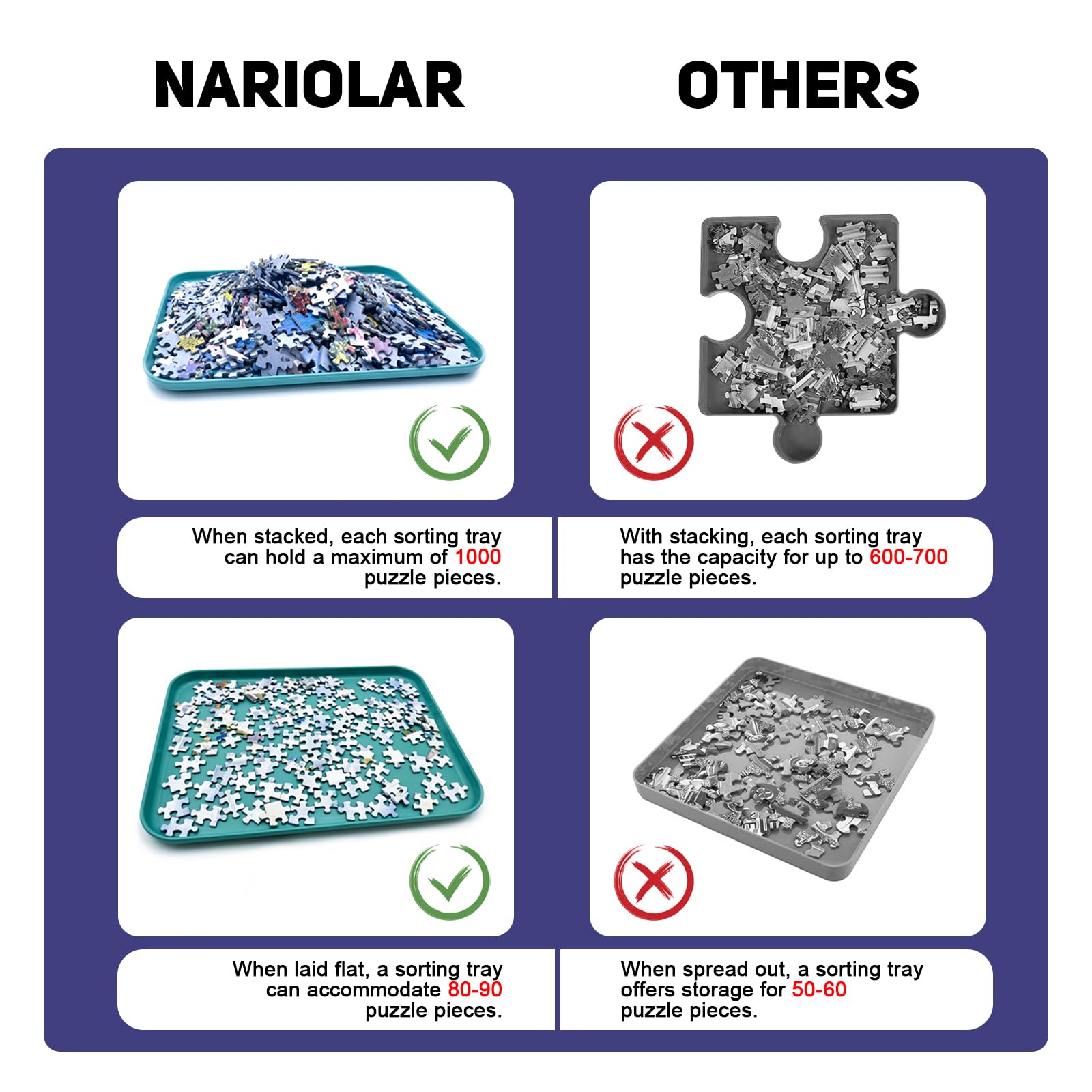 Transform your puzzle-solving experience with Nariolar's Puzzle Sorting Trays. Perfect for home use or as a gift for your puzzle-loving friends and family, these trays will become a staple in your puzzle collection. Organize with confidence, and let the fun begin!