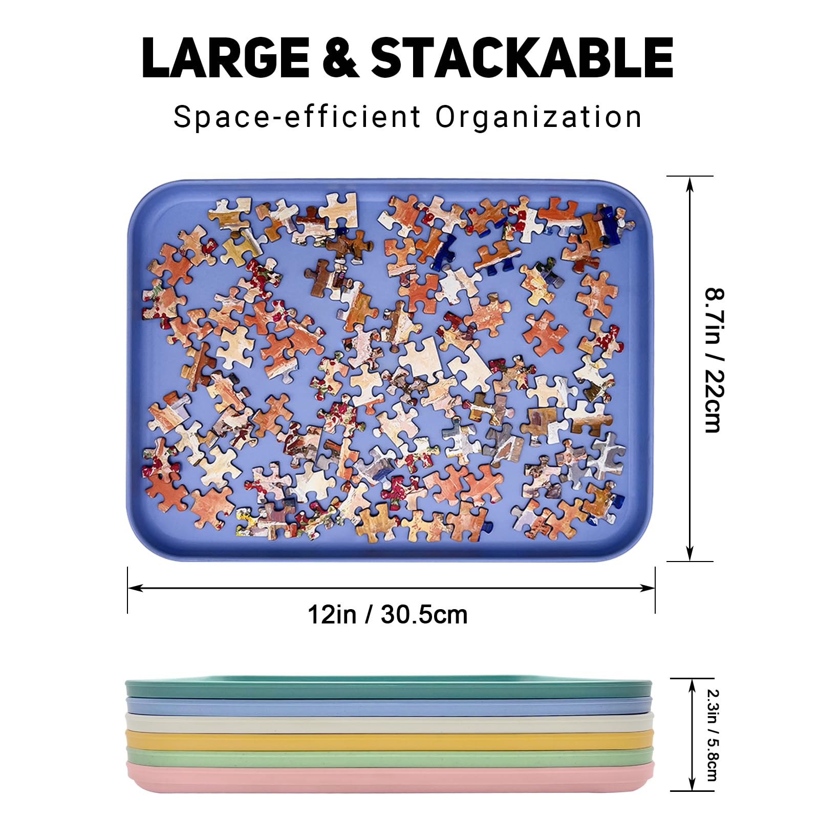 - Up to 2000 Pieces Capacity: Designed for optimal puzzle organization, each tray measures 8.7in x 12in (22cm x 30.5cm), providing ample storage space. These trays can effortlessly hold up to 2000 pieces, making them perfect for puzzle enthusiasts with limited space.