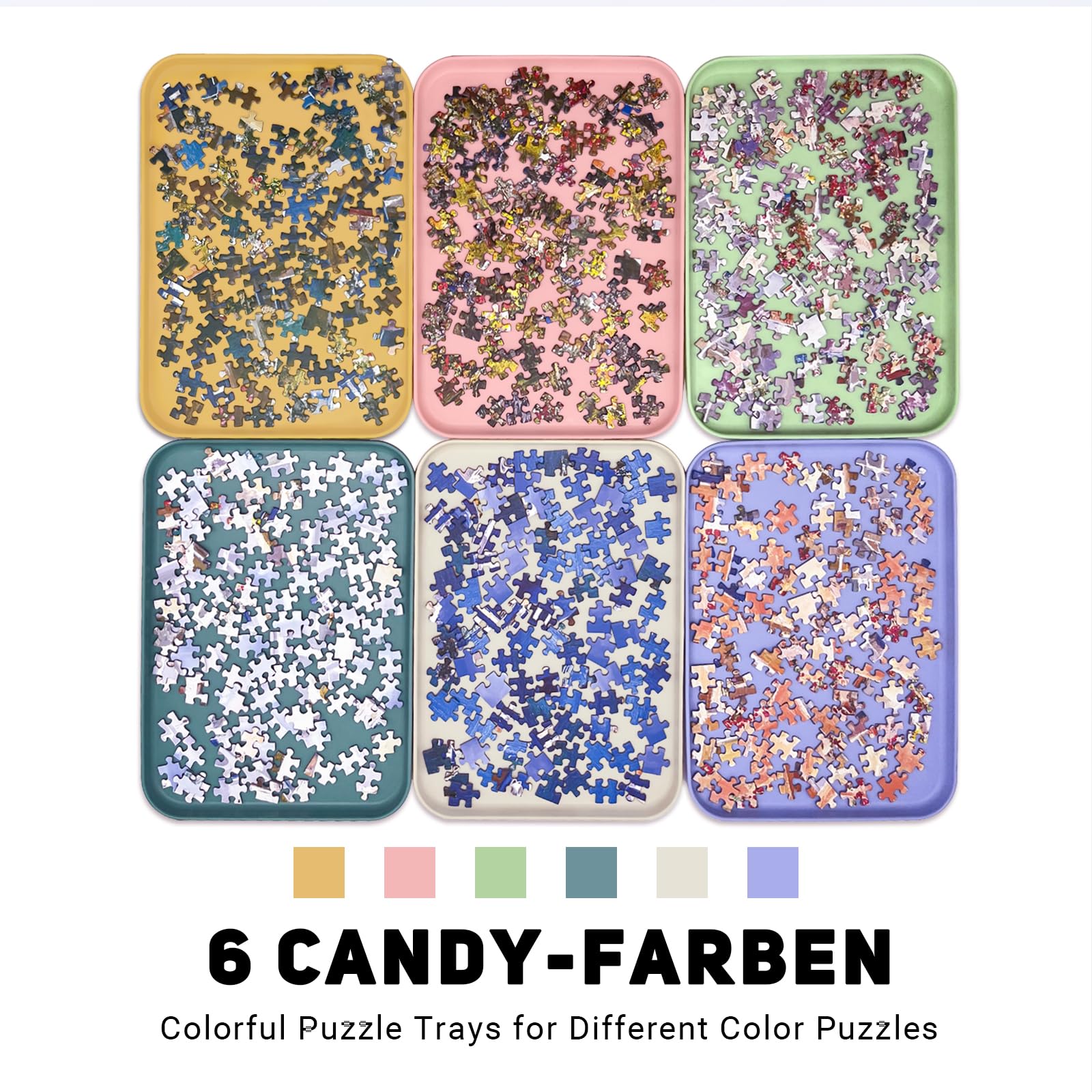 - Q: Can I use these trays for sorting puzzles by color and shape? A: Absolutely! The 6-color sorting trays allow you to efficiently organize your puzzle pieces by color or shape, enhancing your puzzle-solving experience.