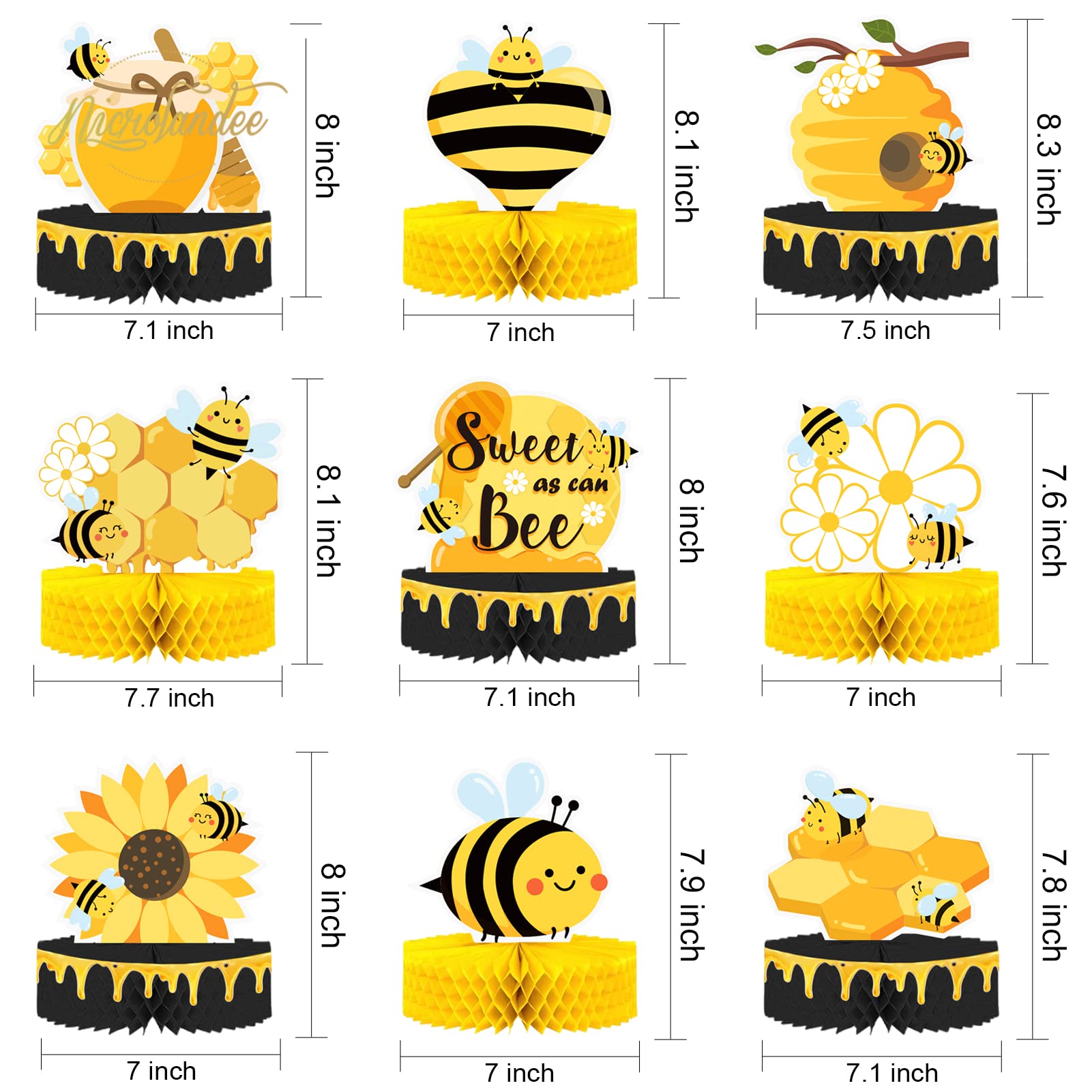 Nicrolandee 9-Piece Bumble Honeycomb Centerpieces - Table Decorations for Birthday Party, Baby Shower, Gender Reveal Party Suppl