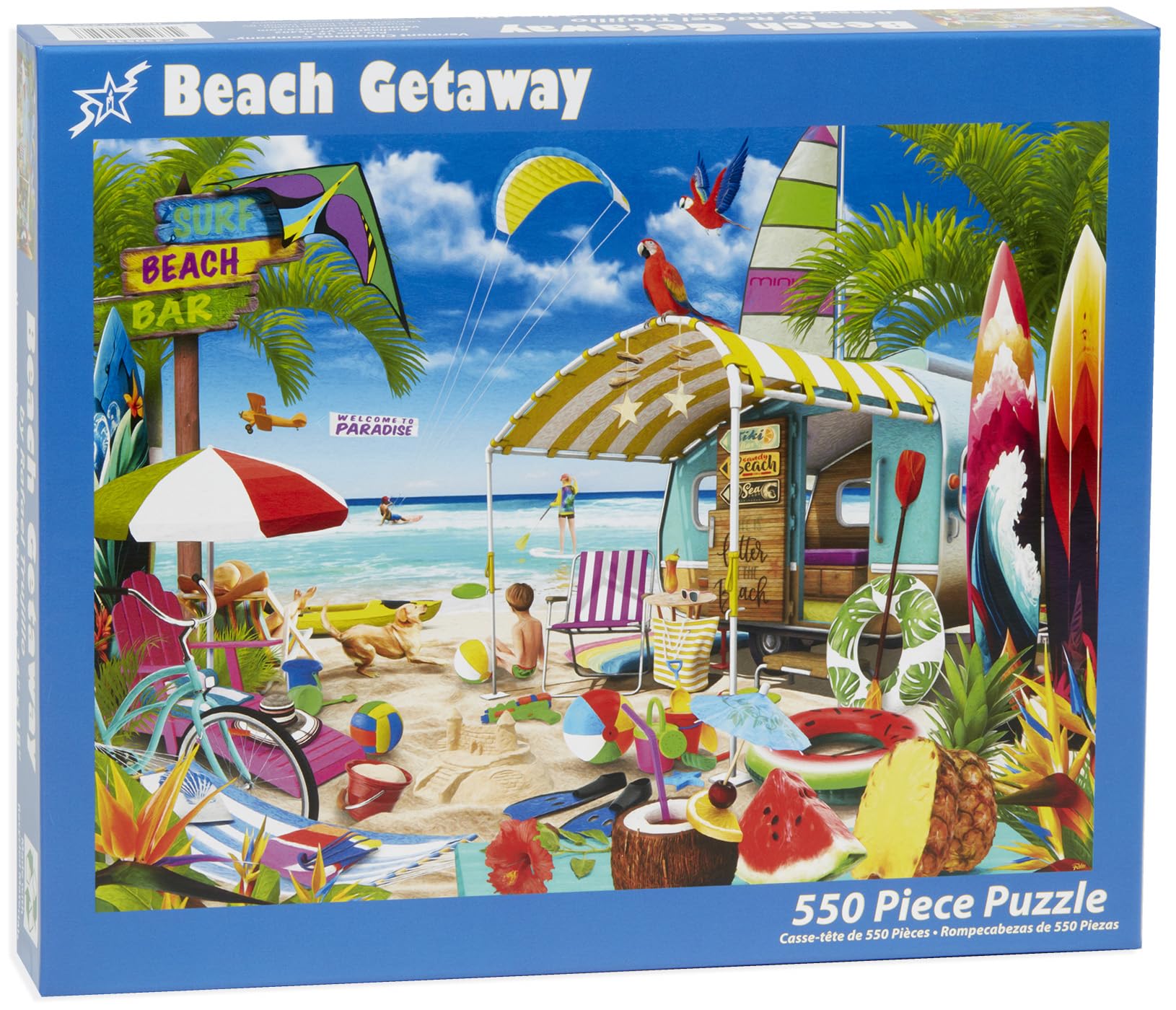 Vermont Christmas Company Beach Getaway Jigsaw Puzzle 550 Piece - Fully Interlocking And Randomly Shaped Pieces - 24' X 18'