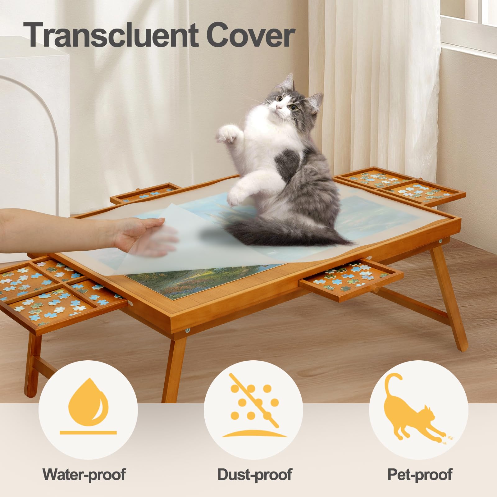 Ykhallybee Puzzle Table 1500 Pieces Wooden Puzzle Board With Legs, 34.3 X 26.5 Jigsaw Board With 4 Drawers And Cover, Folda