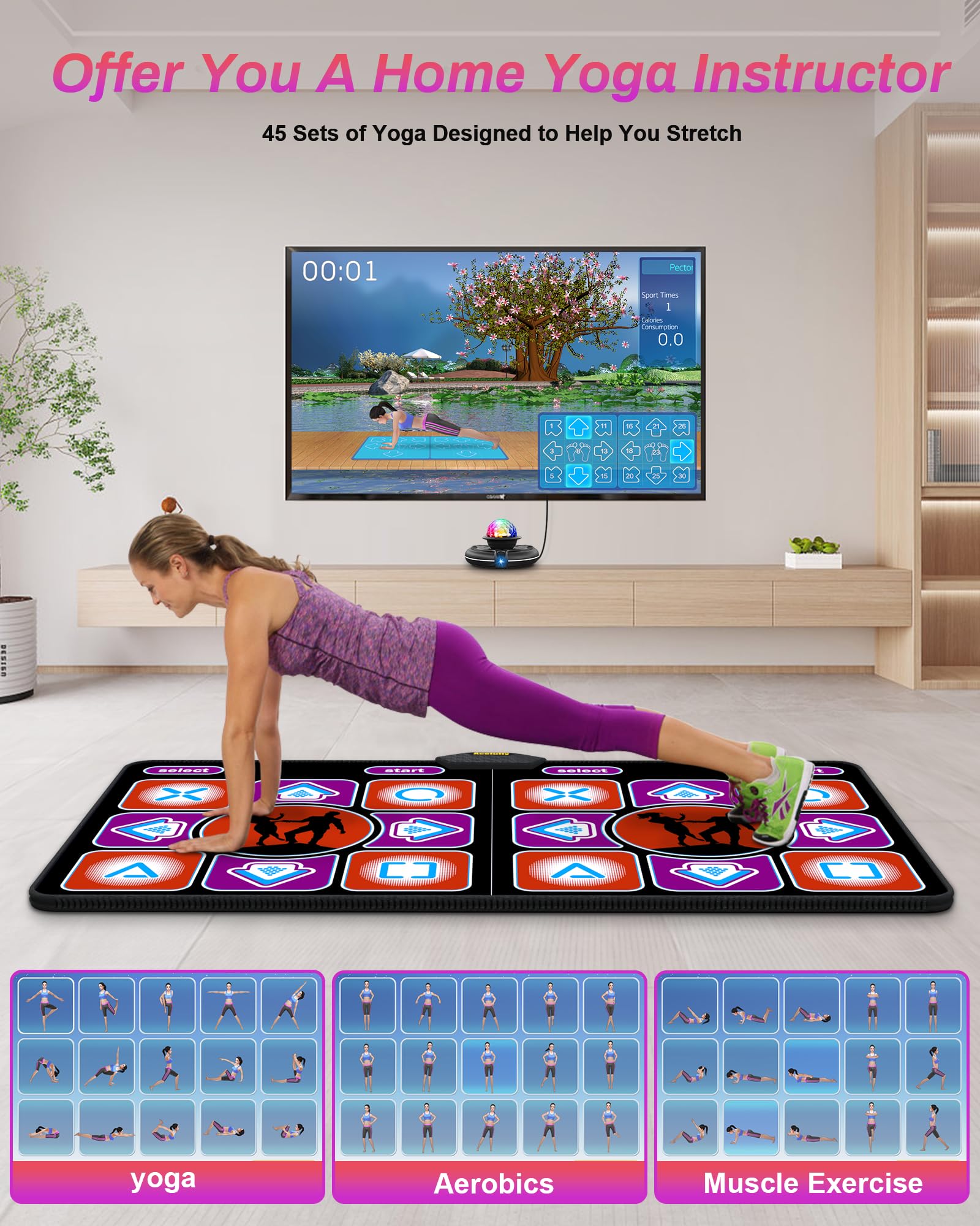 Acelufly Double Dance Mat, Flannel Dance Mat for TV with HD Camera, Dual User Play Mat with Wireless Controller, Non-Slip Dance