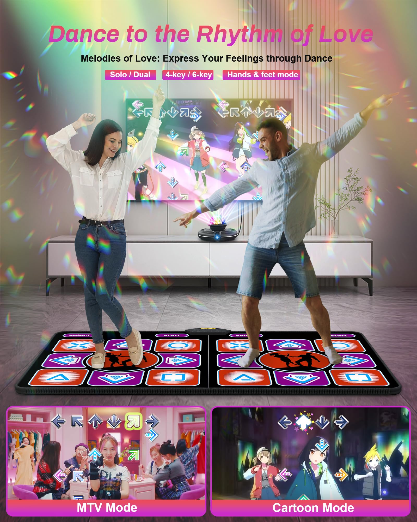 Acelufly Double Dance Mat, Flannel Dance Mat for TV with HD Camera, Dual User Play Mat with Wireless Controller, Non-Slip Dance Pad for Kids Adults Girls Boys