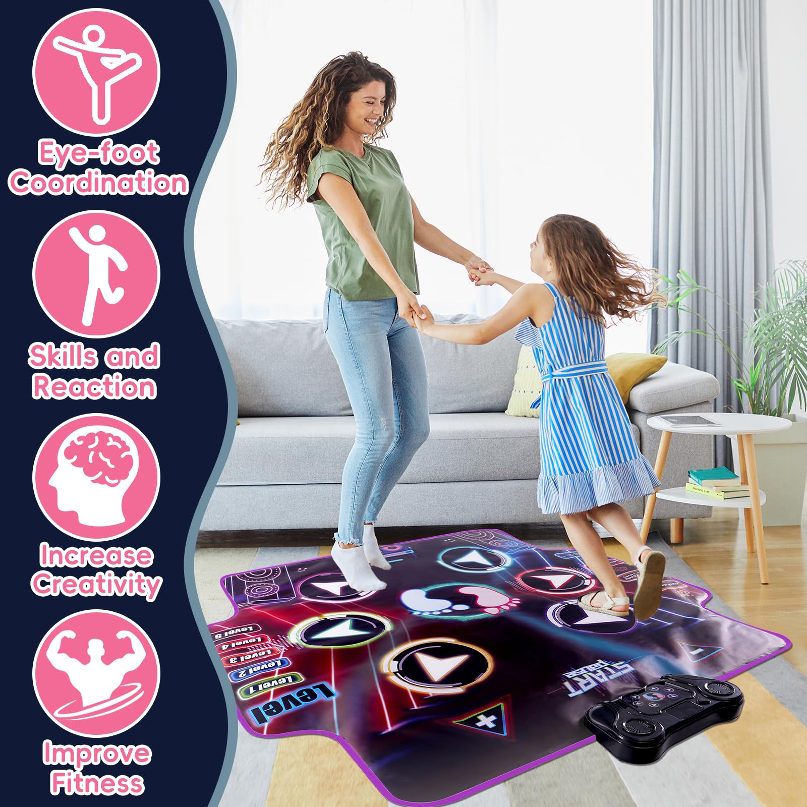JoyRapt Dance Mat for Kids 4-8 Ages 6 Light-up Buttons Bluetooth Dance Mat Girls Toys for 8-10 7 Game Modes Birthday for Teen Girls Dancing Play Mat (black2)