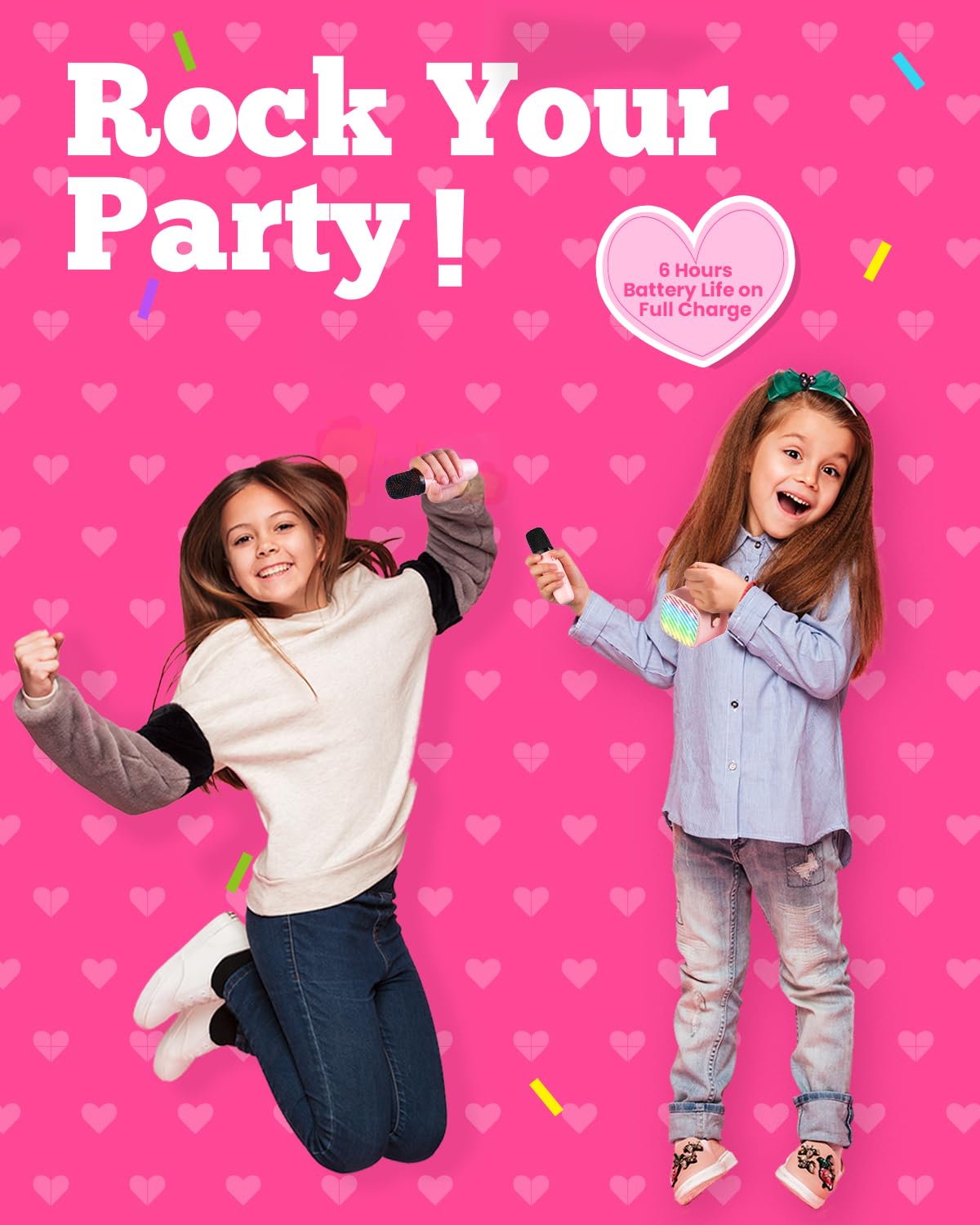 View compareVerkb Kids Karaoke Machine, Kids Toys Birthday Gift For Girls, Mini Portable Bluetooth Speaker With 2 Wireless Microphone For Gi