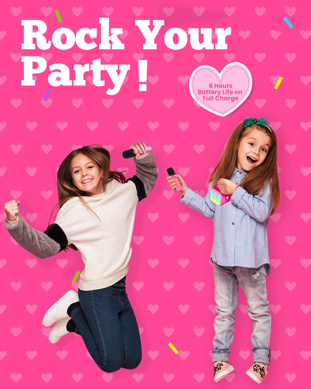 VERKB Mini Karaoke Machine with 2 Wireless Microphones for Kids Kids Toys for Girls and Boys Portable Bluetooth Speaker Gift for Girls 4 5 6 7 8+ Year Old Birthday Party(Rose Red)