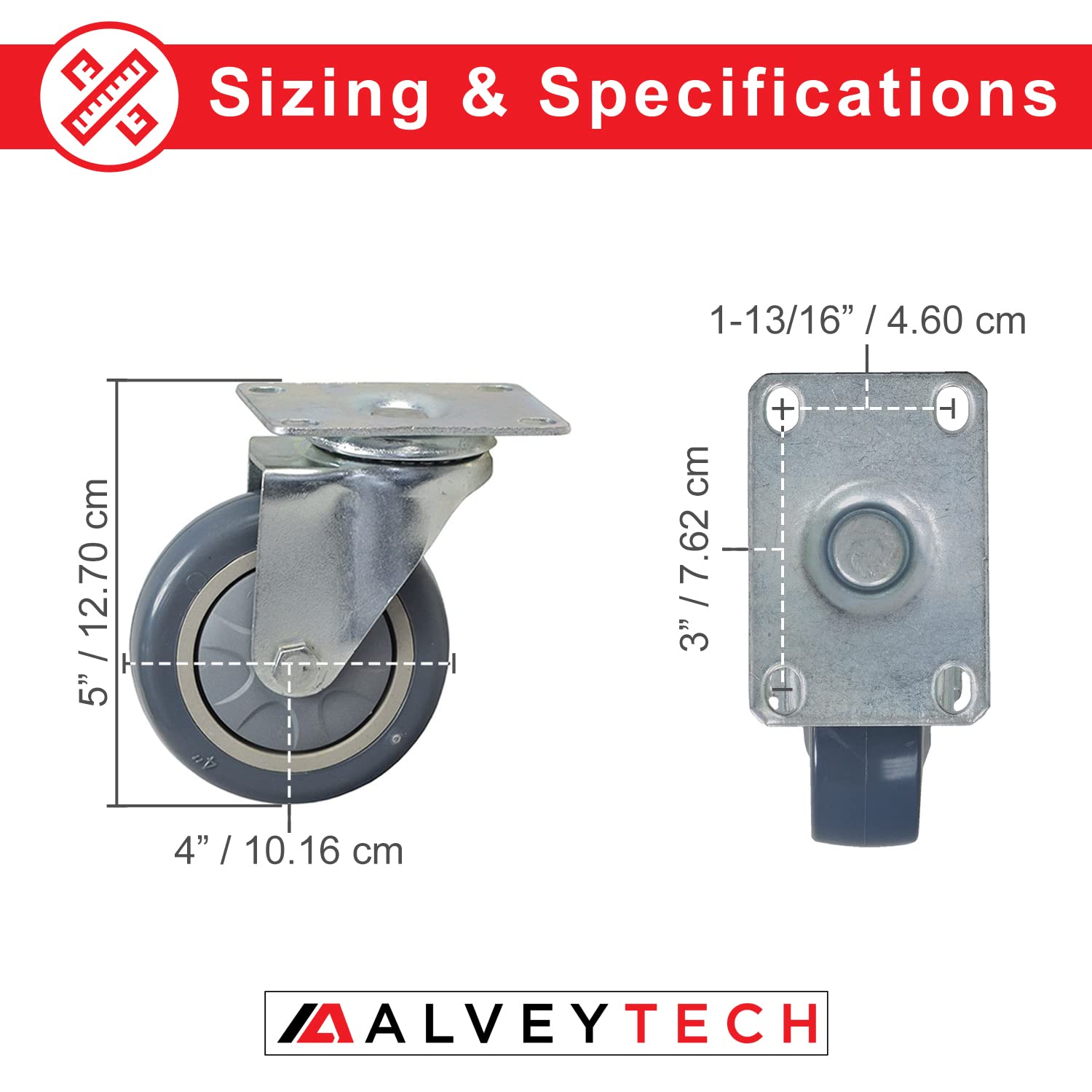 Alveytech Front 4'' Caster Wheel - For Hoverboard Go-Kart Kits, Toolboxes, Replacement Kids Cart Wheels, Adjustable Balancing Ho