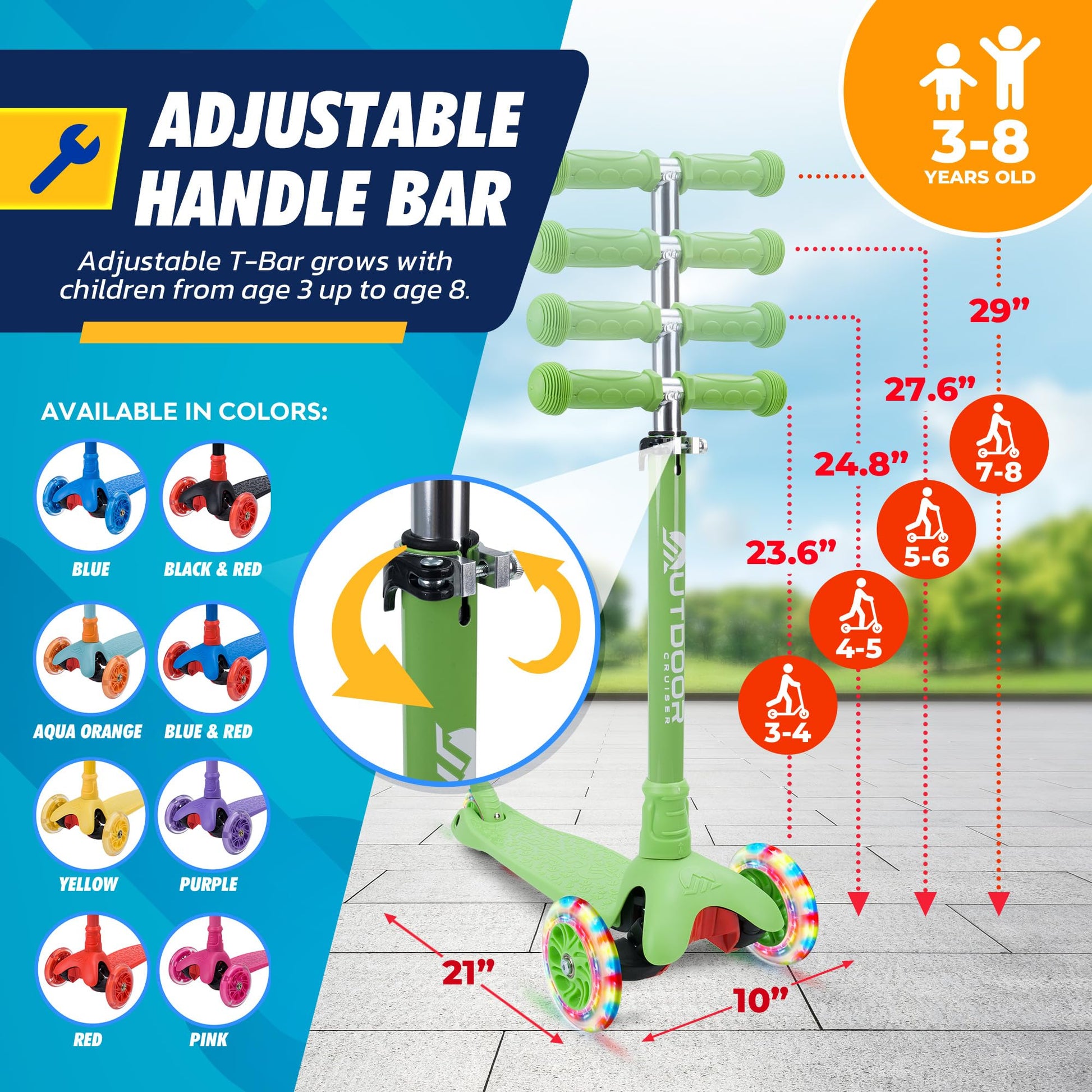 Outdoor Cruiser 3-Wheel Kids Scooter - With Lean-To-Steer Technology, Wide Deck, Led Lighted Wheel, 4-Level Adjustable Height T-