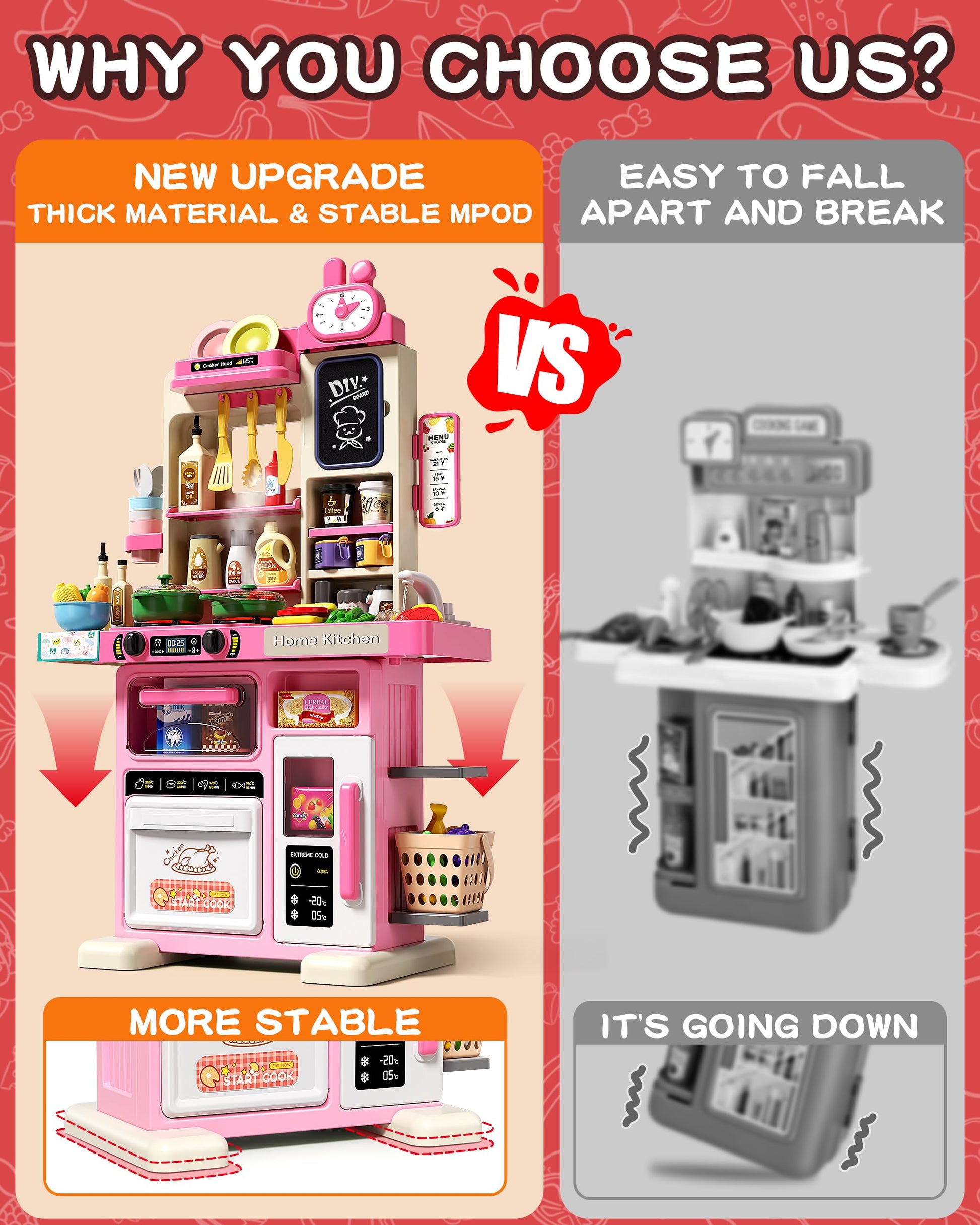View compare33.8IN Kids Kitchen Playset, 70PCS Kid Play Kitchen with Realistic Lights & Sounds, Spray Sink Toy Kitchen Accessories, Pretend