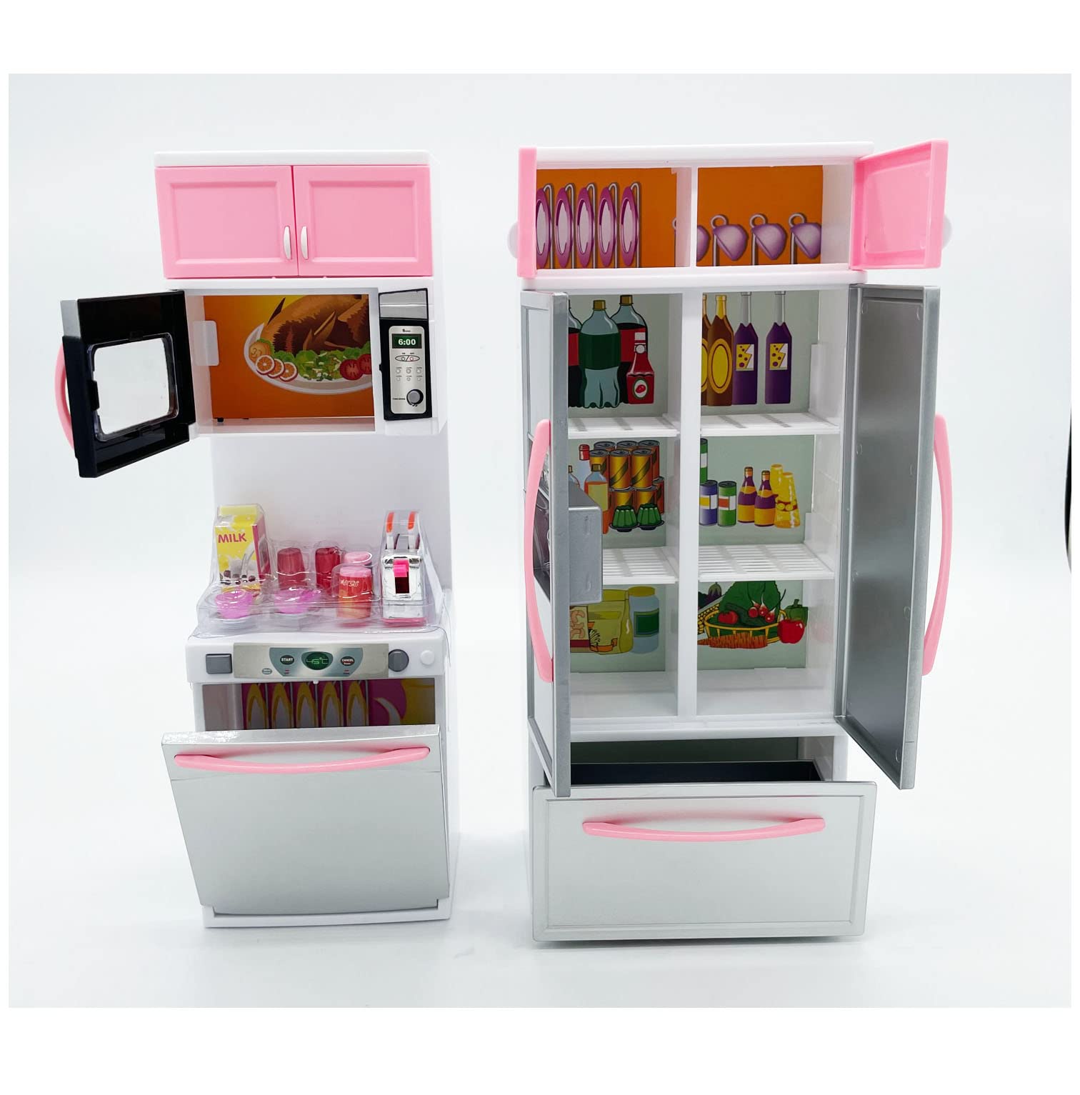 Doll Size Pink Kitchen Cooking Toy Play Set Play House & Accessories with Doll Girls Pretend Play Furniture Appliances with Lights & Sound