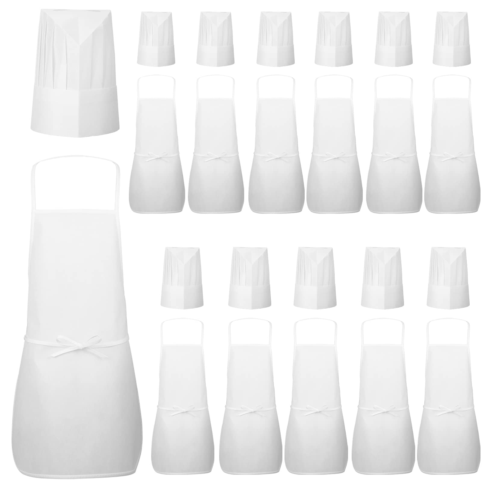 Sntieecr 12 Pieces Kids Chef Apron and 12 Pieces Adjustable Chef Hat Set, Disposable Chef Hats for Kids for Kitchen Cooking, Painting, Training ( 7-12Year, White ) Features: The apron and chef hat set can meet the need of school cooking class project. Great material will make kids more comfortable in the cooking class. Customize fabric chef apron and hats, enjoy the fun of painting. Specifications: Material:Non-woven fabrics, Terylene Color: White Size: Toques Chef Hats: 10.8 x 9 inch/ 27.5 x 23 cm Kids Apron: 16.9 x 22 inch/ 43 x 56 cm Package Including: 12 x Adjustable Chef Hat 12 x Chef Apron Note: Don't iron your apron, or it may be damaged. Don't use the washing machine to clean your chef's hat or apron as it could be damaged.