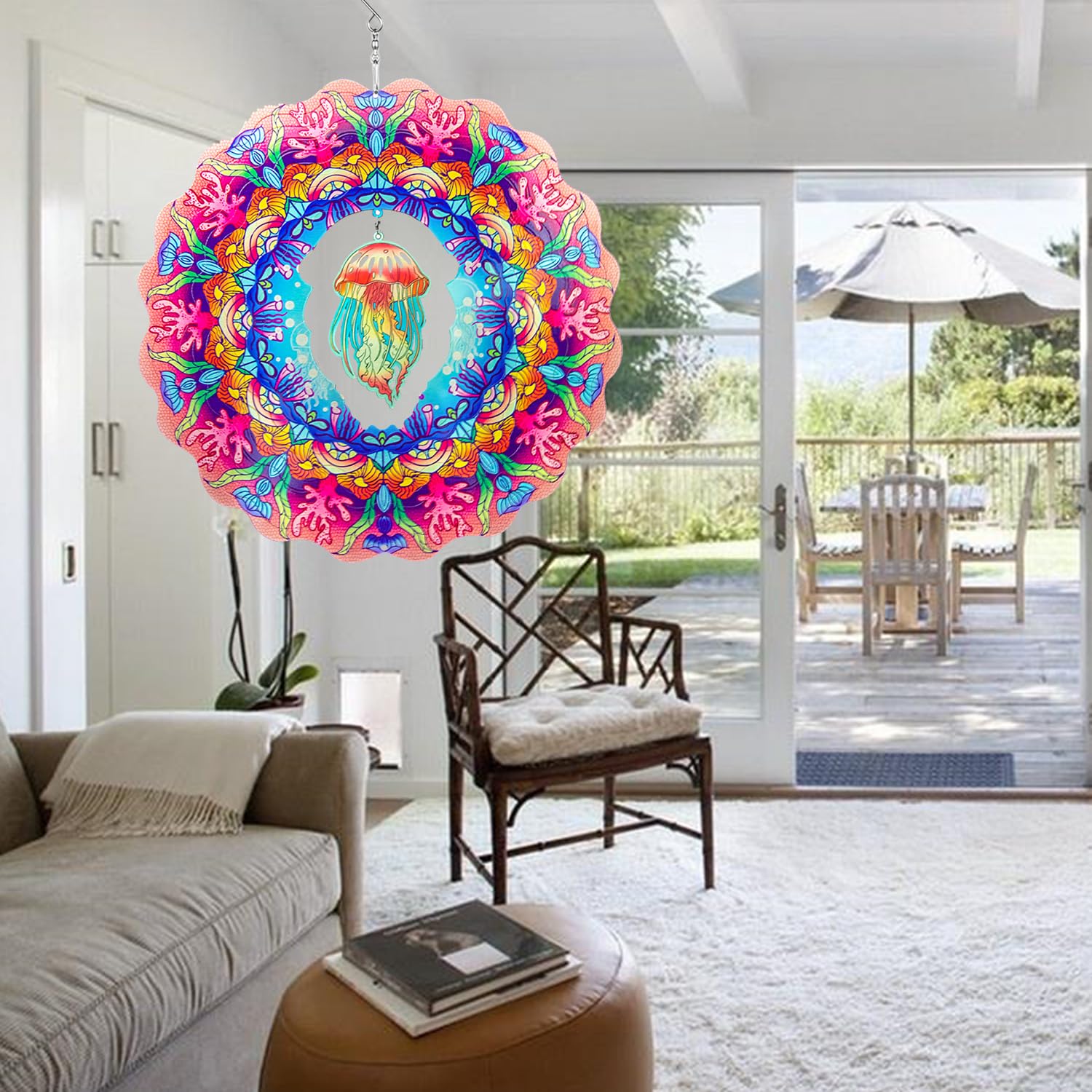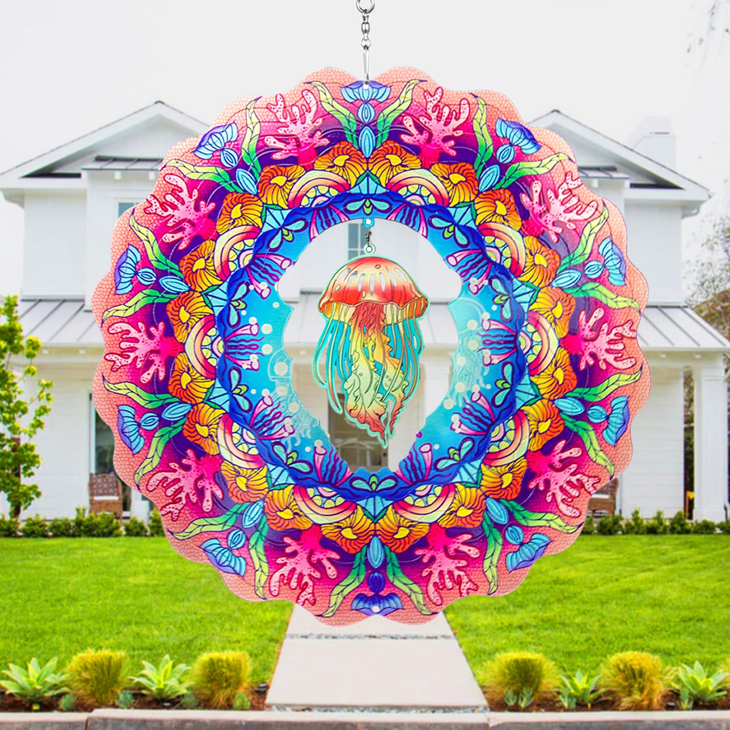 Dinoneyi Wind Spinner Outdoor Metal Jellyfish 12Inch 3D Stainless Steel Garden Sculpture 3D Wind Spinner Hanging Yard Garden Dec