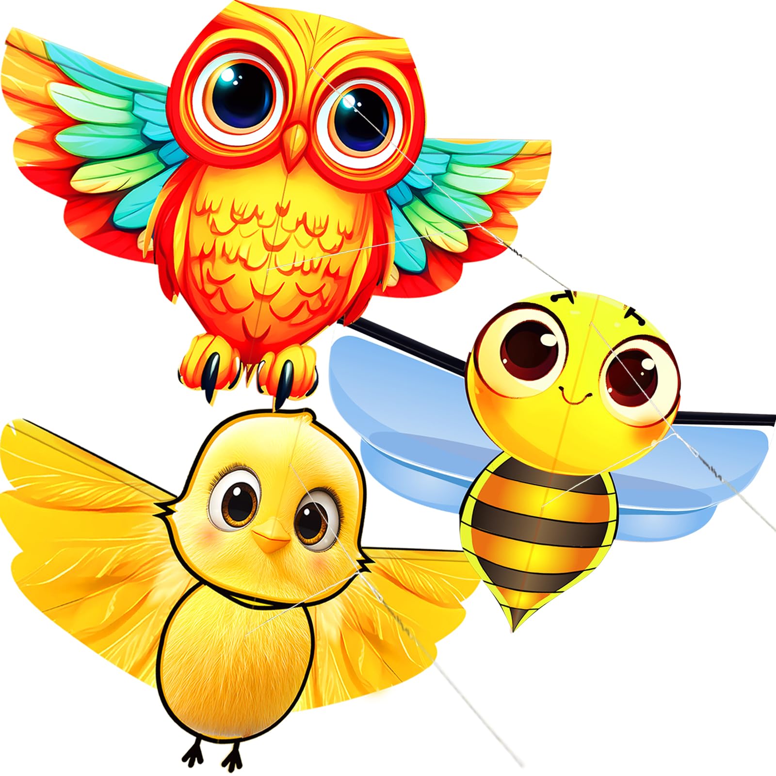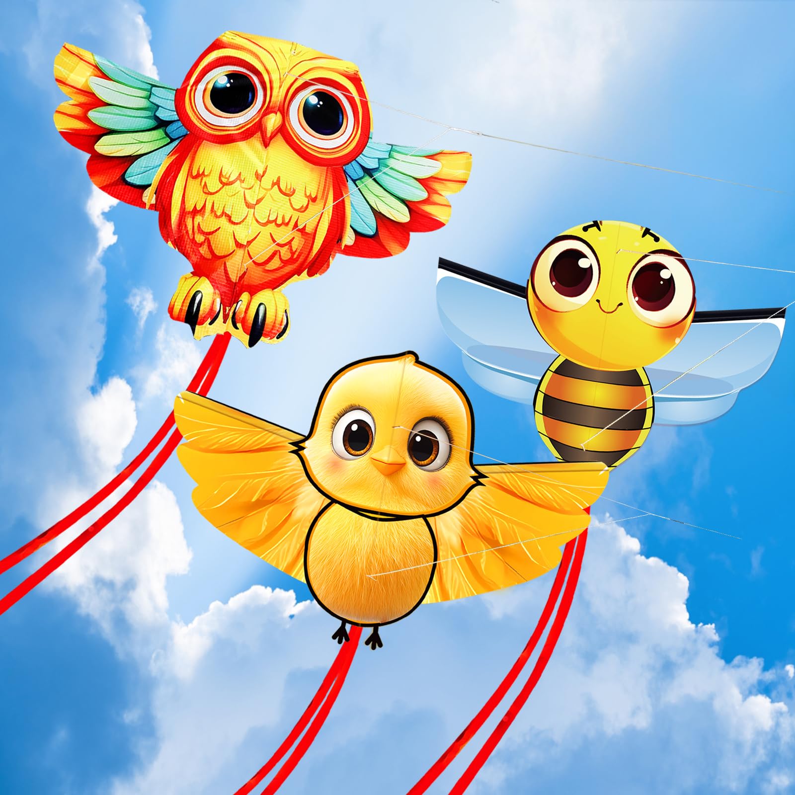 Hengda Kite 3 Pack Of Kites,Owl And Bee And Chick Kite,For Kids Beginners And Adults Cute Design High Definition Printing Easy T