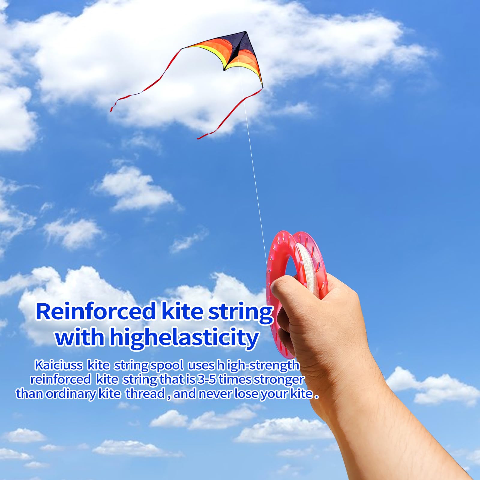 Kaiciuss 4 Pack Kite String Hoop for Kids, String Spool Set for Boys & Girls, Kite Handle Kit with 300 Feet Line for Each Reel W
