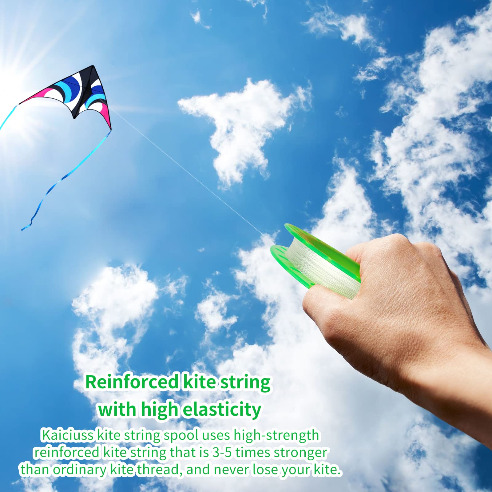 Upgrade Material, Safe Design. This Kite Hoop Is Made Of Frosted Matte Abs, And The Kite Handle Is Thickened And Sanded, So It Will Not Hurt The Hands, Whether It Is An Adult Or A Child Can Use It With Confidence. | Reinforced Kite String With High Elasticity. Kaiciuss Kite String Spool Uses High-Strength Reinforced Kite String That Is 3-5 Times Stronger Than Ordinary Kite Thread, And Can Easily Withstand A Tensile Force Of 60 Lbs Which Makes It Easy To Cope With The Needs Of Kite Flying In Various Weather Conditions And Different Winds, And Never Lose Your Kite. | Complete With Accessories For Immediate Use. Each Kaiciuss Kite Reel Comes With A Connector, You Just Need To Connect Them Through The Connector Before You Fly, So What Are You Waiting For? | Designed Not Only For Kids, Toddlers, But Also For Adults Who With Small Hands. This Kite Line Hoop Has An Outer Diameter Of 5.1’’ And An Inner Diameter Of 4.3’’. The Size Is Moderate And Easy To Handle, Even For Children. In Addition, It Is Small In Size, Light In Weight And Easy To Carry. Bring Your Kids To Enjoy The Fun Of Kite Flying. | A Perfect Match For Any Traditional Kite. This Kite Coil Can Fly Any Common Kite, Such As Triangle Kite, Diamond Kite, Soft Kite, Etc. But It Doesn'T Work For Stunt Kites, Surf Kites, Etc. In Addition, Please Note That It Is Not Recommended To Fly Kites Over 2 Meters With This Spool. Children And Young Children Need To Be Assisted By Adults When Flying.