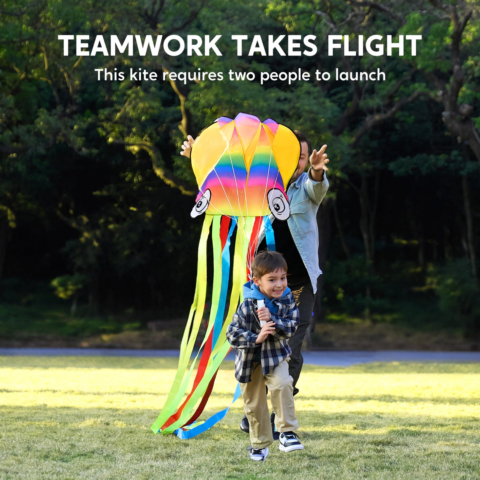 View compareSYNCFUN Large Kite in The Rainbow Octopus- Easy-Fly Design for Kids and Adults with 328ft Line, Giant Beach Kites for Outdoor Fu