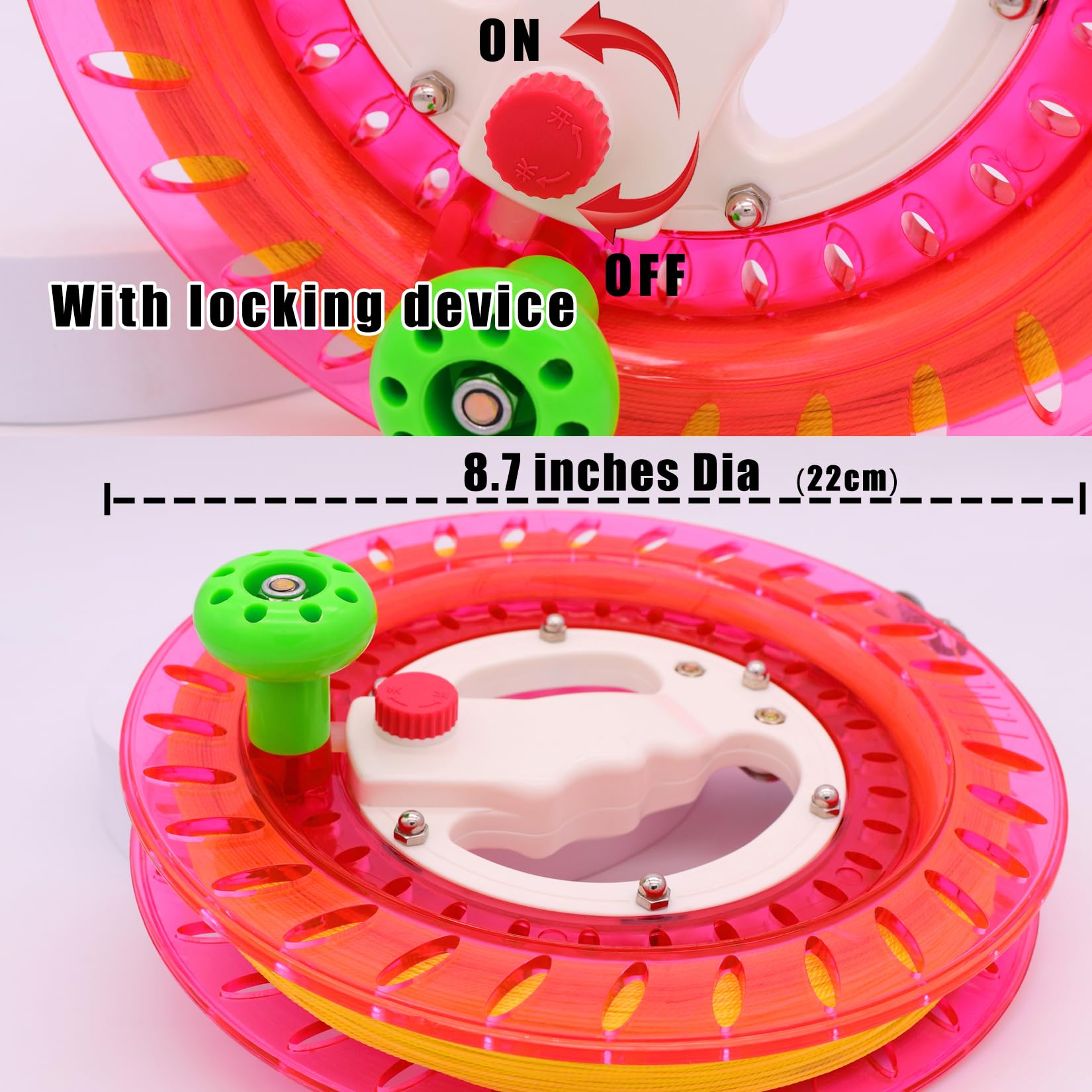 TianYueFly Kite Reel and Kite String Spool,8.7inches Dia with 1200ft Kite String, Kite Line Winder with Lock and Connector for Kids & Adults (Red)