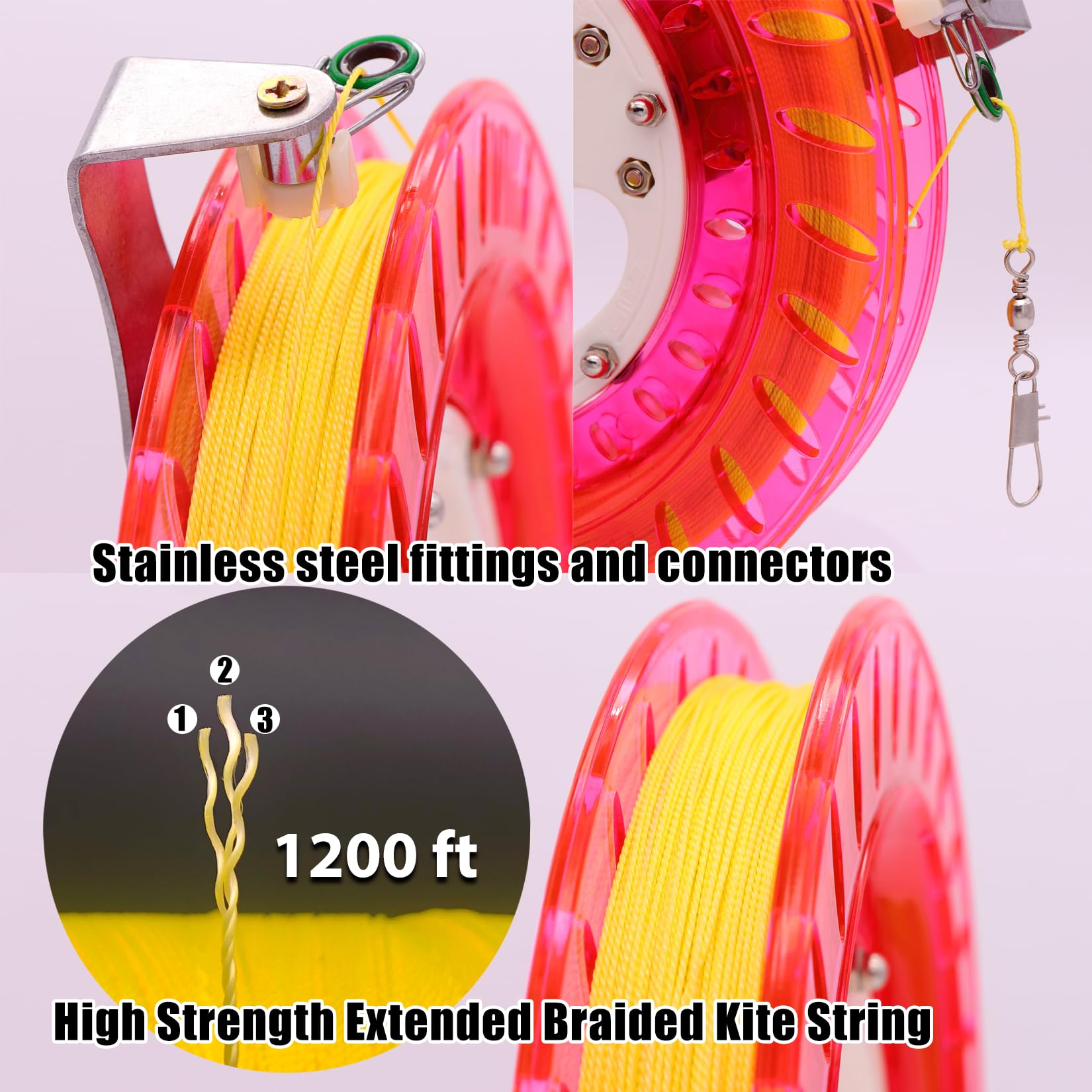 Tianyuefly Kite Reel And String Spool, 8.7Inches Dia With 1200Ft Line, Winder With Lock And Connector For Kids & Adults (Red)