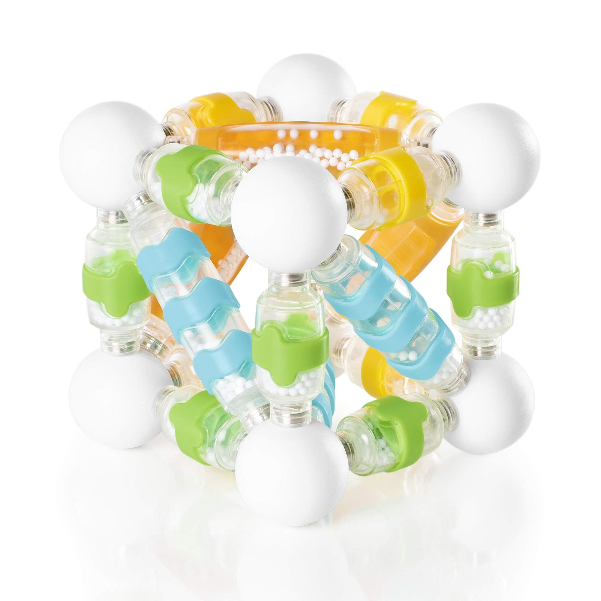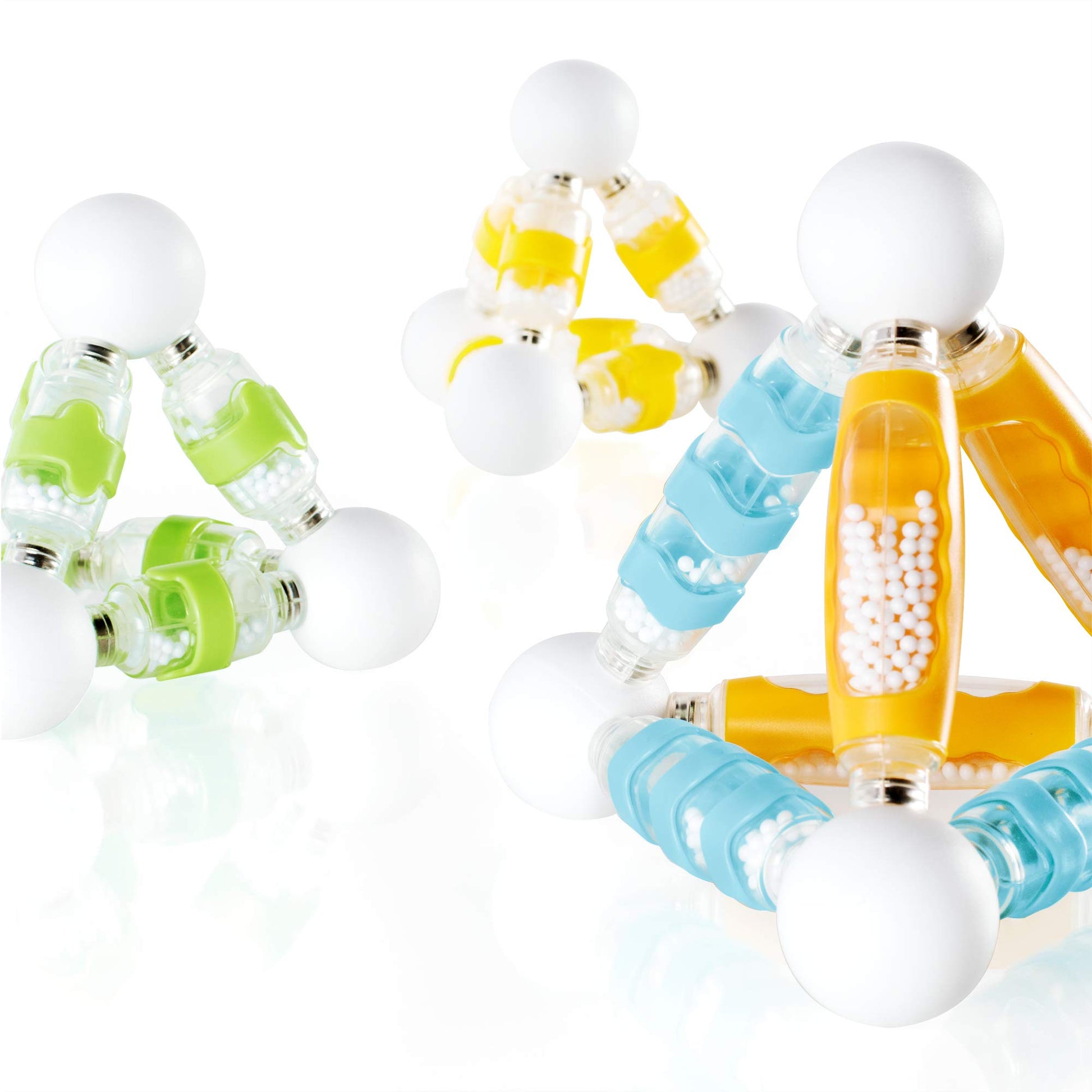Grippies Shakers - an auditory STEM building set for toddlers | Includes two sizes of ABS plastic rods with clear windows, secure magnetic ends and overmolded metal ball connectors | Soft, overmolded plastic promotes tactile exploration | Available in 20 or 30 piece sets | Age 18 months+
