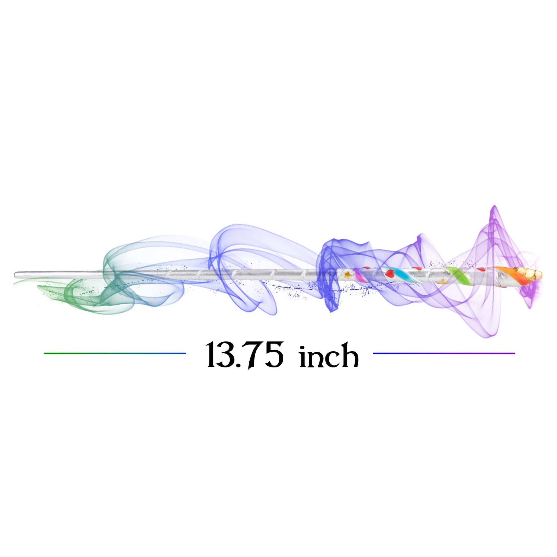 Beautiful designed magical accessory is made with silver tone, rainbow ribbons, and star design and exquisite details; Every aspiring wizard or witch needs a wand before catching the train back to school | Cast of resin from an original hand carving with natural look; Solid weight makes for a satisfying and authentic feel when held; Steel core prevents warping and and makes the wand extra strong | Wand measures approximately 13.75 inches; Great for display with a collection, on its own, or for a cosplay adventure | Perfect for an imaginative journey to the magical world of witchcraft and wizardry | Packaged in protective box with fitted foam holder; Ready for giving to that special someone