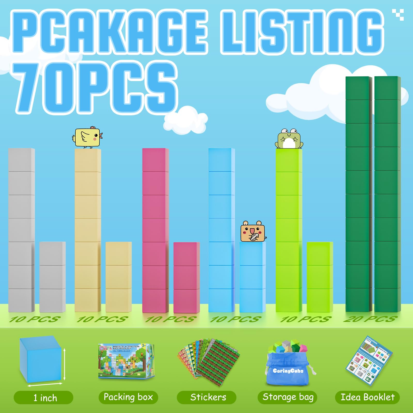 - Q: What materials are used in the CaringCubs Magnetic Blocks? A: The magnetic blocks are made primarily from high-quality magnets, ensuring durability and strong connectivity between the tiles.