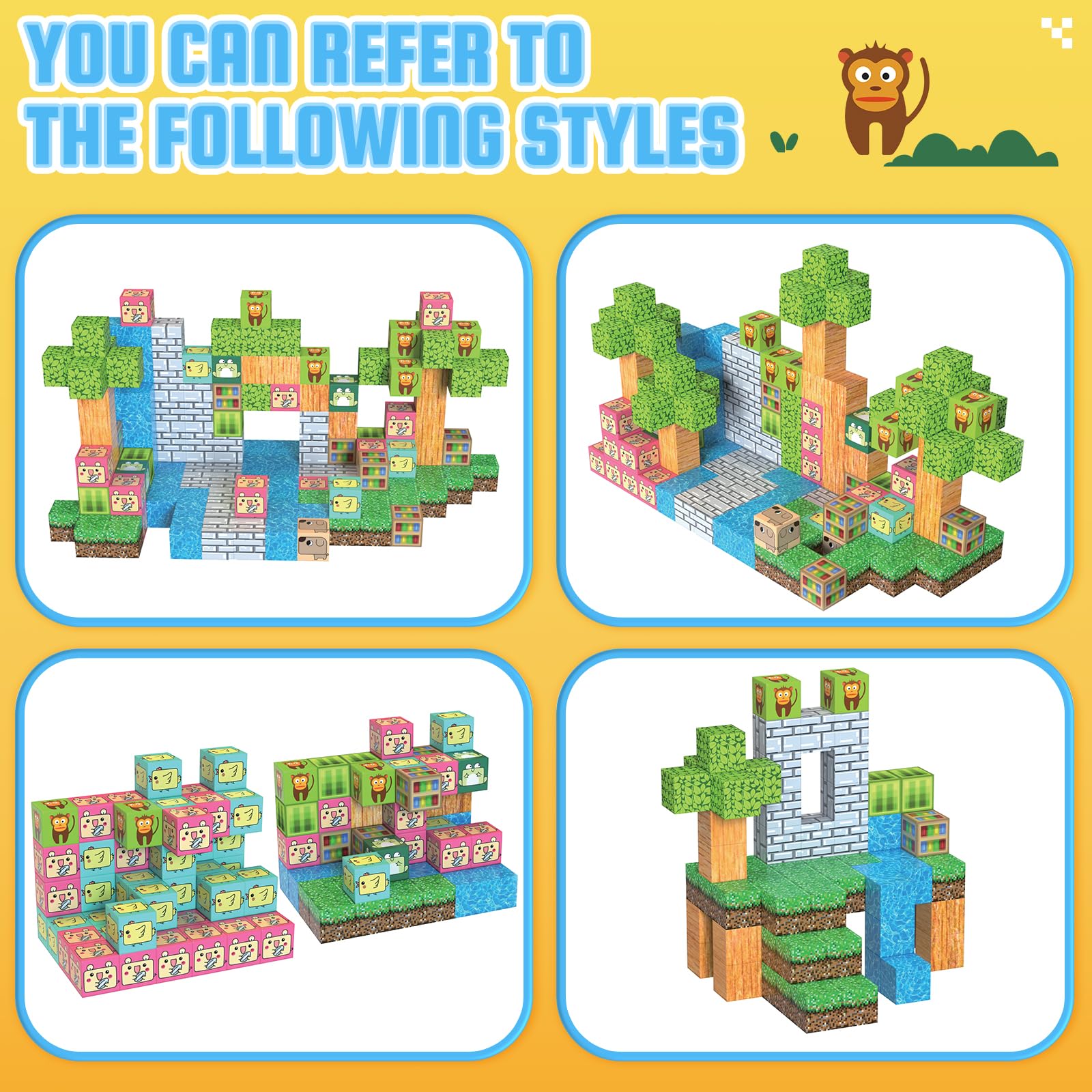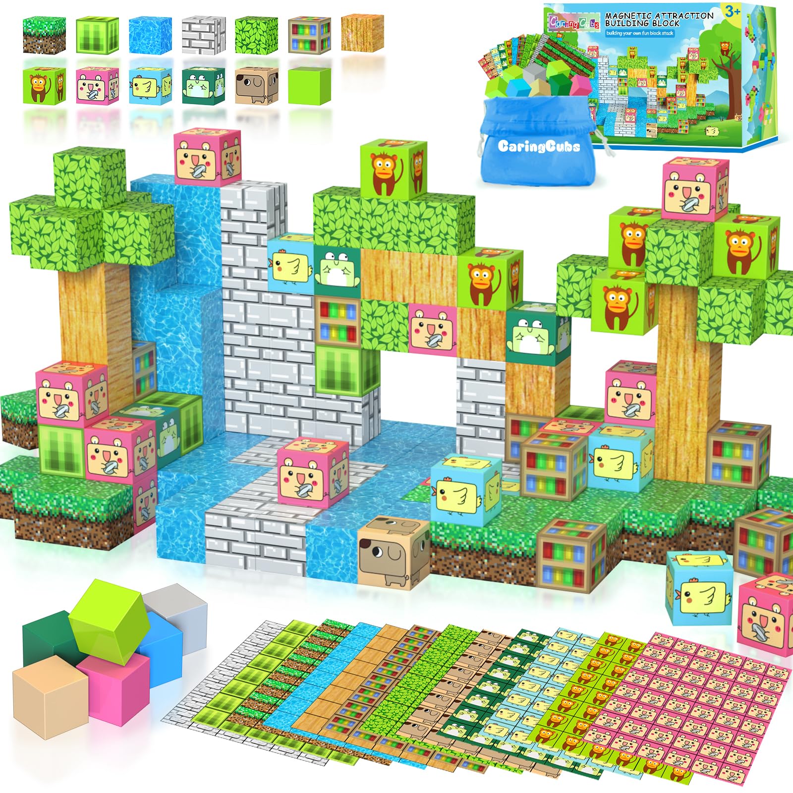 Caringcubs Magnetic Blocks-Build Mine Magnet World Edition, Magnetic Toys For Boys & Girls Age 3-4 4-5 6-8, Stem Montessori Sensory Toys For Toddlers Gifts For 3+ Years Old, Fidget Cubes Construction Toys