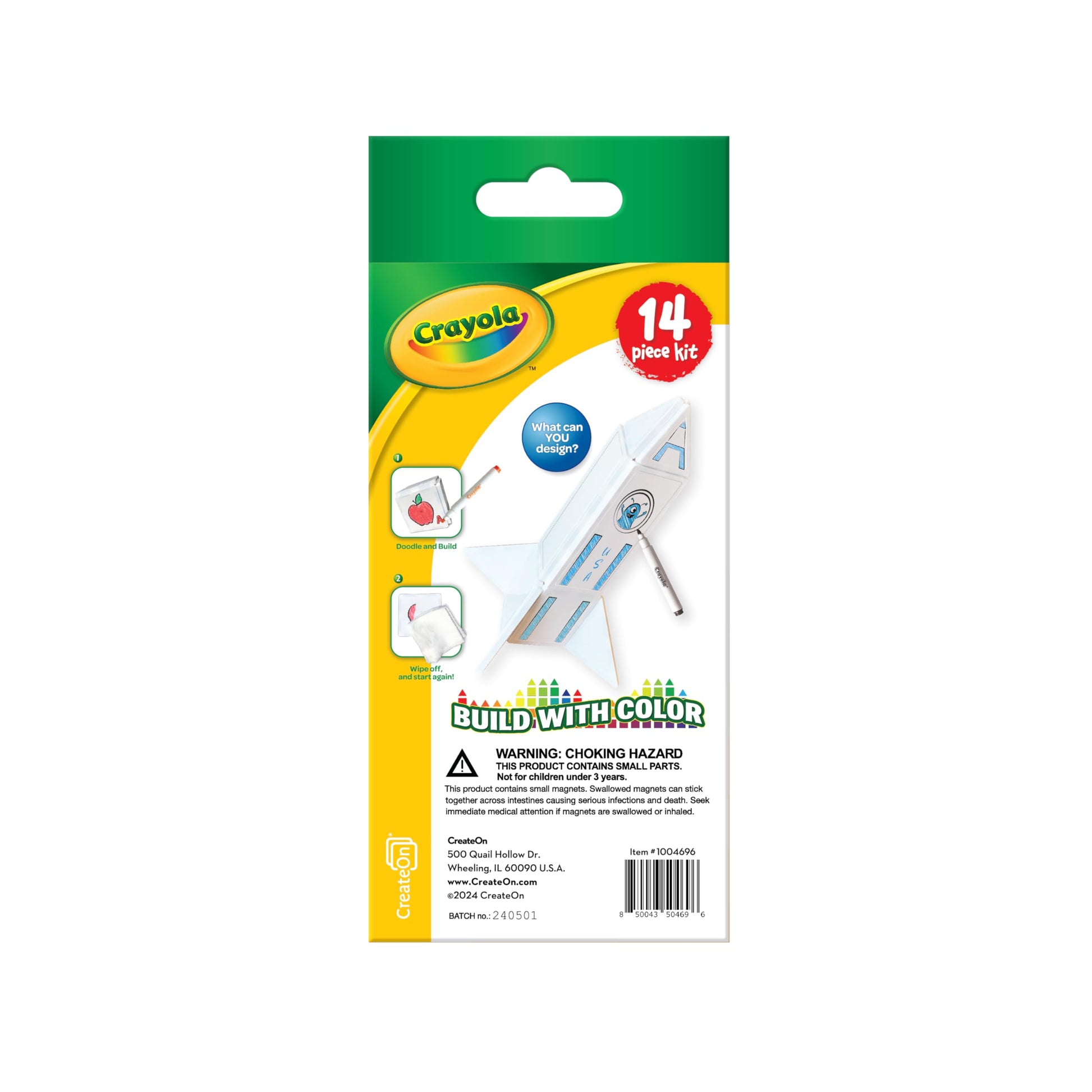 Crayola And Createon Have Teamed Up To Make Blank Magnetic Tile Canvases For Kids That Are Perfect For Drawing On With The Included Crayola Washable Markers. Little Artists Ages 3 And Up Can Build Anything They Imagine As They Connect The Magnetic Tiles With Their Art! Our Magnetic Tiles Help Teach Steam Skills, Such As Geometry And Spatial Awareness. Your Child Can Draw Anything They Like On These Double-Sided Tile Pieces. Just Wipe The Pieces With A Damp Cloth So Your Child Can Use Them Again And Again! Pair Them With Any Other Of Our Crayola Magnetic Tile Sets And Watch Their World Get Just A Little Brighter With This Tried And True Product. Mix And Match Them For Hours Of Endless Creating And Fun. Crayola Products Give Colorful Wings To The Invisible Things That Grow In The Hearts And Minds Of Children. Our Crayola Magnetic Tiles Help Nurture That Growth. 14 Piece Magnetic Tile Set