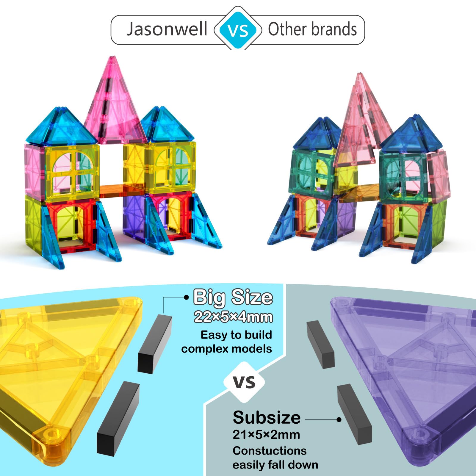 Jasonwell Magnetic Tiles Building Blocks Set For Boys Girls Preschool Educational Magnet Construction Kit Stacking Stem Toys Christmas Birthday Gifts For Kids Toddlers 3 4 5 6 7 8 9 10 + Year Old