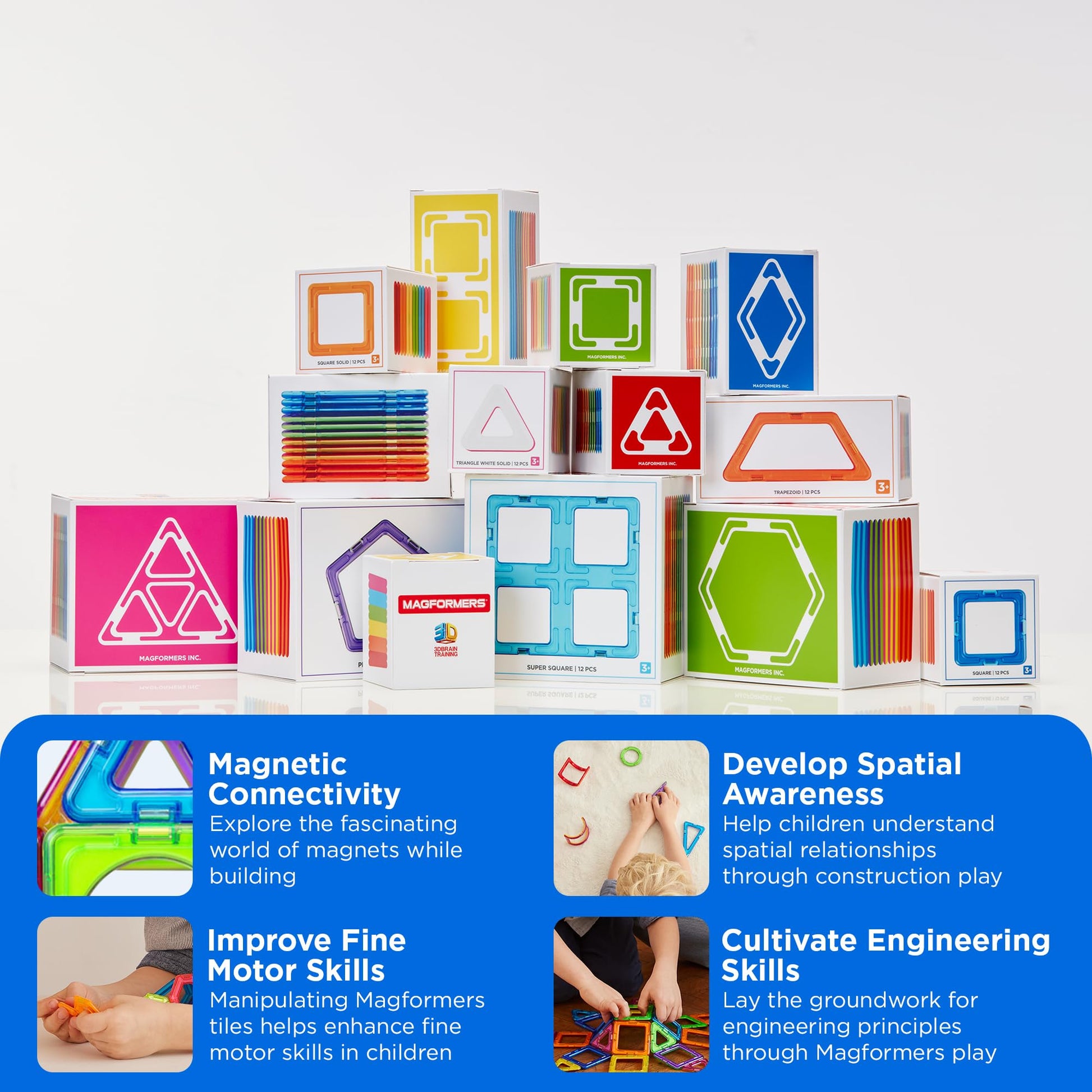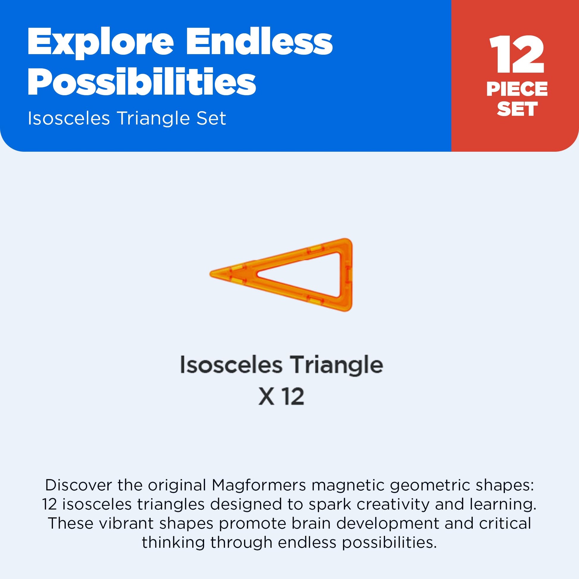 The original and authentic Magformers magnetic geometric shapes. 12 Rainbow Isosceles Triangle. | Perfect for brain development, critical thinking and education. | Step-by-step educational idea booklet with follow along ideas and instructions. | Neodymium rare-earth magnets for guaranteed connectivity. Compatible with all Magformers shapes and accessories. Super strong, safe and durable BPA-free High Quality ABS plastic. Conforms to CE, ASTM and EN71 | Ages 3 years and up.