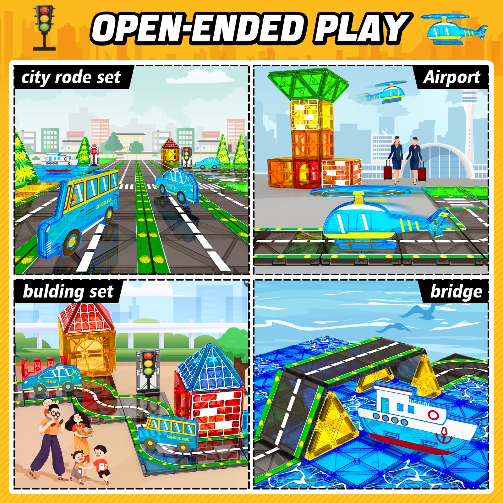 - Q: How do the upgraded magnets enhance playtime experience? A: The upgraded larger size magnets provide stronger magnetism, allowing kids to create larger and more stable structures, which enhances their imaginative play and helps simulate different traffic scenarios.