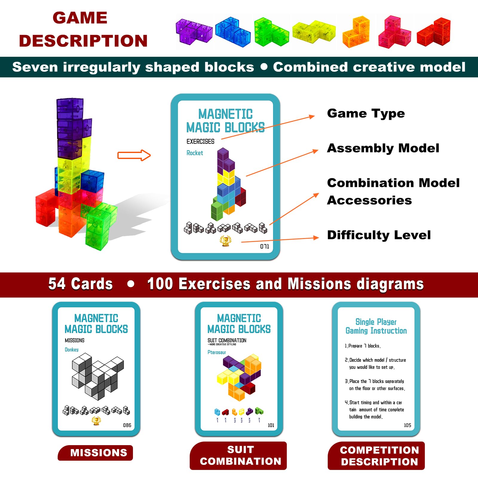 Ouxia Magnetic Building Blocks Magic Magnetic 3D Puzzle Cubes, Set Of 14 Multi Shapes Magnetics Blocks With 108 Guide Cards,Pare