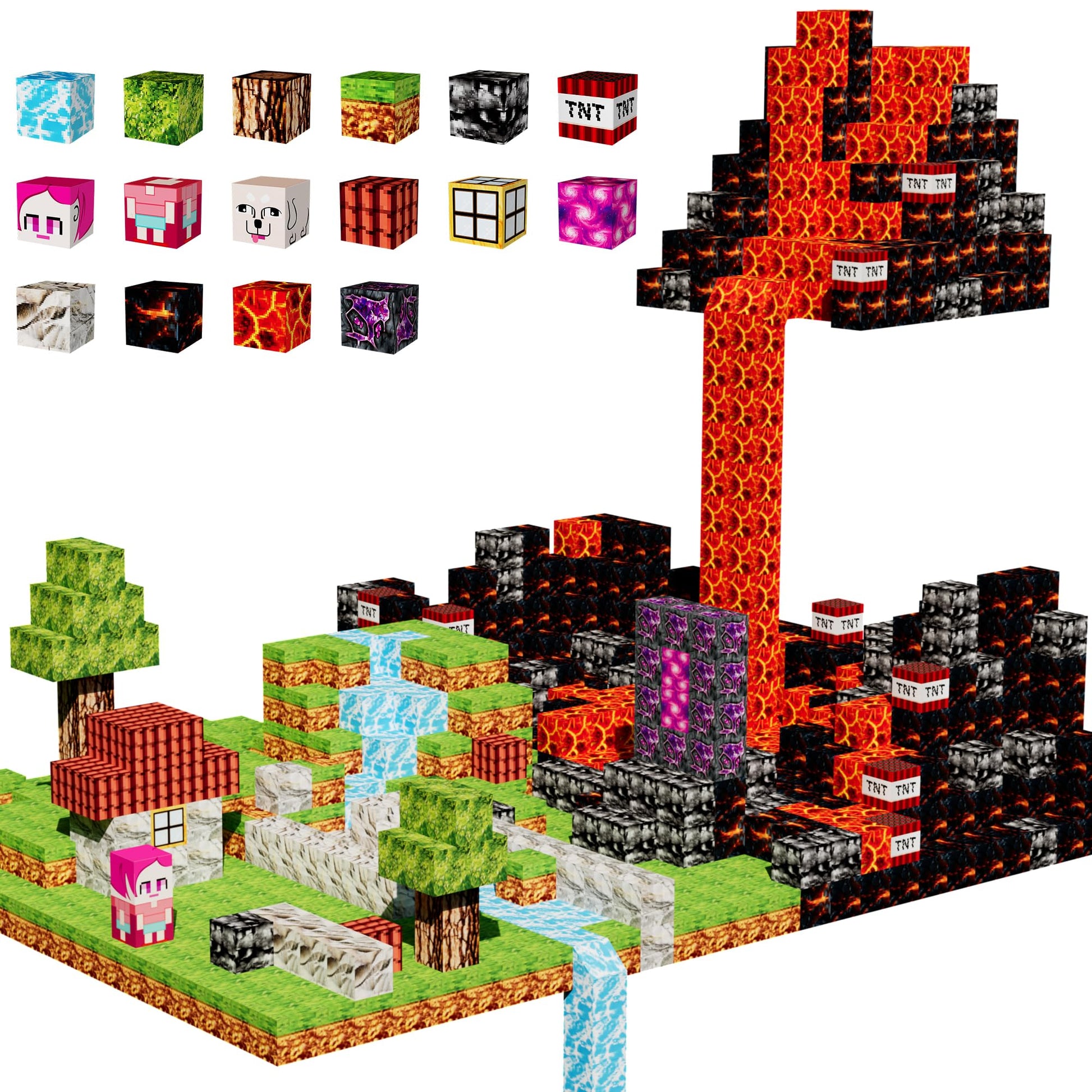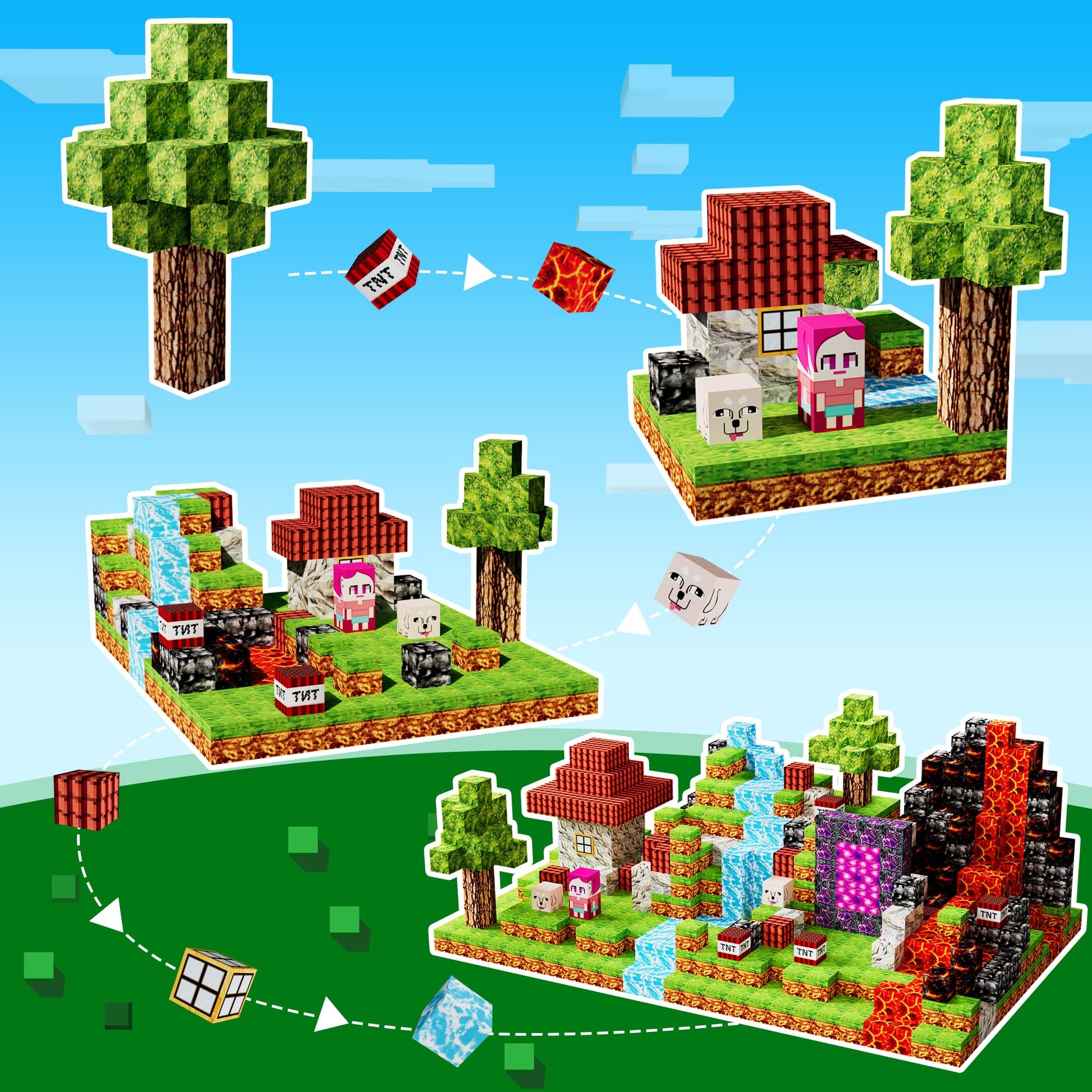 - Q: What types of elements are included in this building set? A: The Petenjoy Magnetic Blocks set includes 16 buildable elements such as granite, water, trees, grass, lava, portals, doors, windows, characters, and animals, enabling kids to create various games, scenes, and stories.
