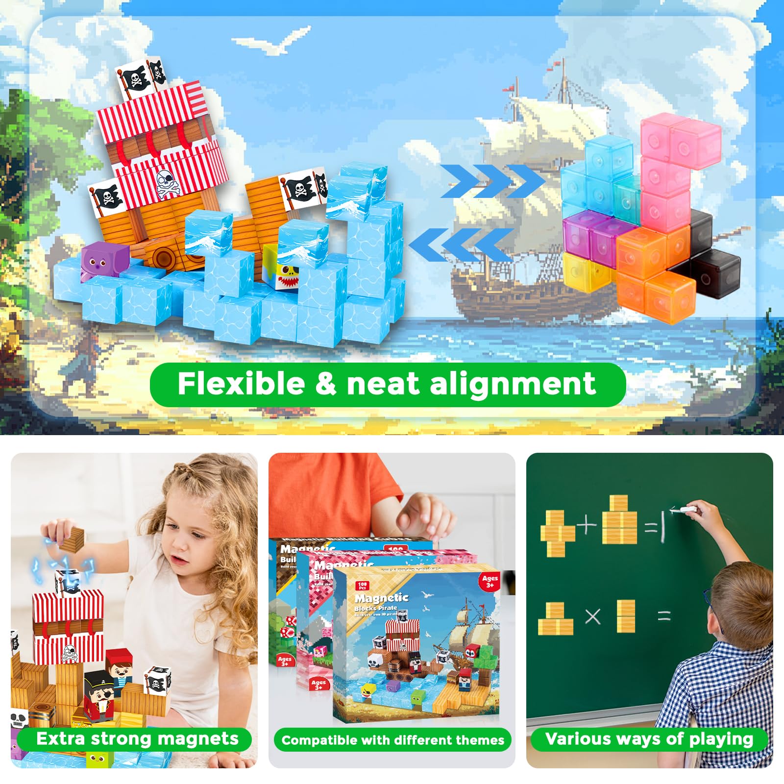 Toyunited Magnetic Blocks - 100Pcs Magnetic Building Priate-Ship Blocks, Magnetic Cube Stacking, Stem Montessori Sensory Toys For Kids Boys Girls Ages 3 4 5 6 7 8 9 10 Easter Birthday Gifts