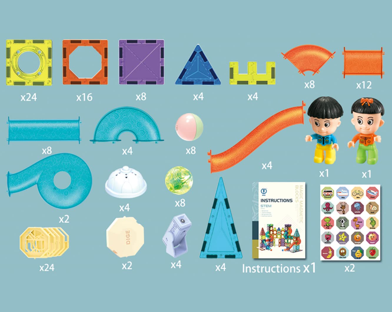 Embark on a journey of imagination and education with our Unique Kids Magnetic Tiles Building Blocks with Marble Run. This versatile toy is not just a playset; it's a gateway to creativity, problem-solving, and STEM/STEAM learning-an ideal Christmas or birthday gift. Unleash endless creativity as young builders craft awe-inspiring structures, enhancing fine motor skills. The magnetic magic comes to life as these tiles transform into captivating marble runs, providing hours of engaging fun. Our toy seamlessly integrates STEM/STEAM principles into play, nurturing critical thinking, problem-solving, spatial awareness, and creativity. It's the perfect gift for curious minds, making playtime an educational adventure. Crafted with safety in mind, these high-quality, non-toxic Magnetic Tiles with Marble Run ensure your child's well-being. Ignite a passion for learning and creativity with this exciting toy-a blend of education and entertainment.